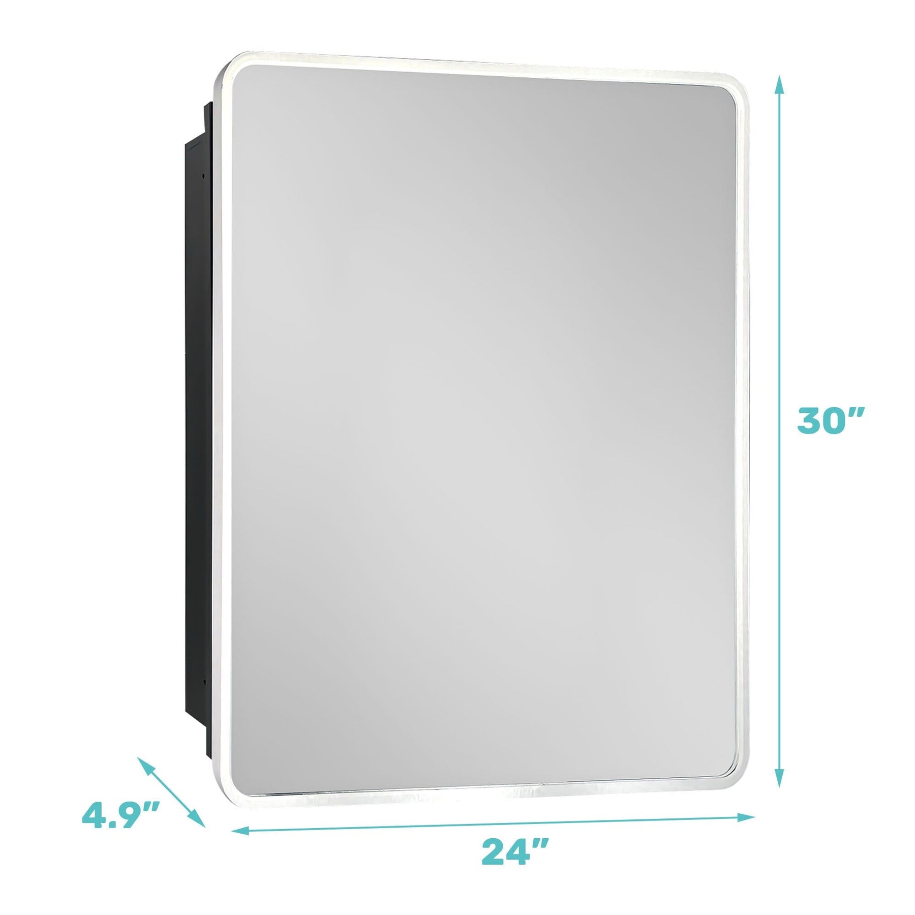 A: The overall dimensions are 24 inches wide by 30 inches tall by 4.9 inches deep, with a rough wall opening size of 21.6 x 24 x 3.5 inches.