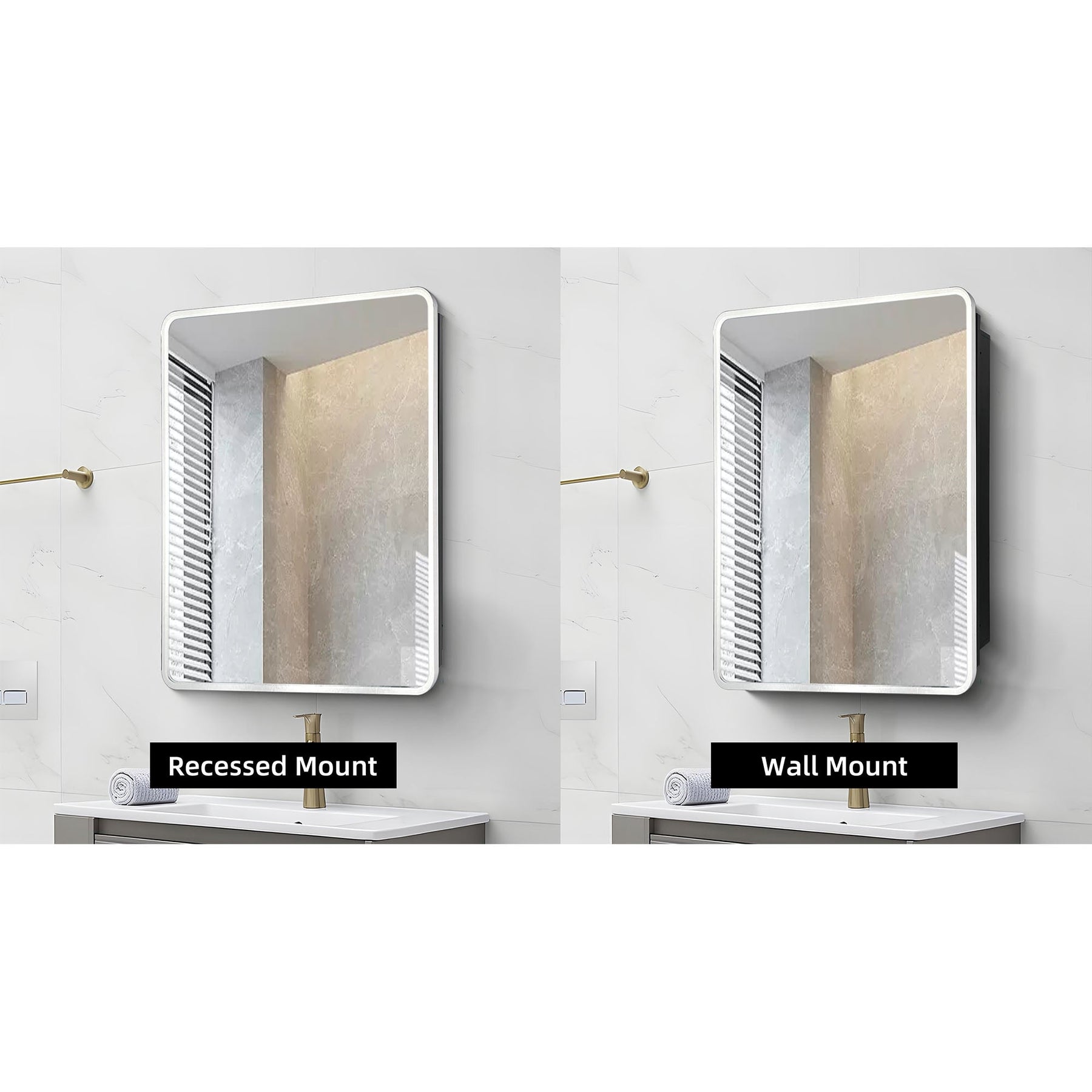 The WELLFOR Mirror Medicine Cabinet is a luxurious addition that marries functionality and modern design. Its reflective allure not only brightens any bathroom space but also introduces a chic, contemporary vibe with its chrome-framed elegance. The graceful arc angles of the door subtly accentuate its modern aesthetics, blending seamlessly into diverse decor themes. Whether surface or recess mounted, pair it with plush textiles and metallic fixtures for a sanctuary infused with sophistication. This piece transforms ordinary routines into moments of serene opulence.