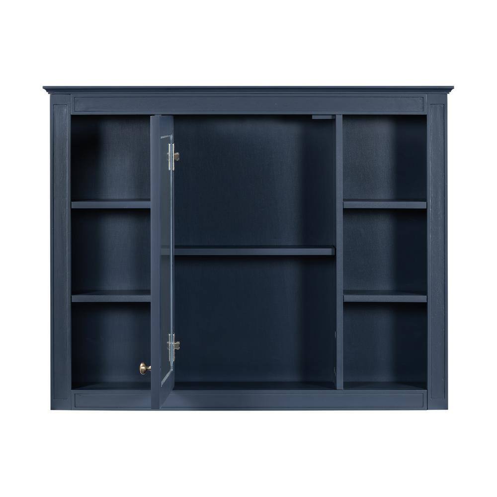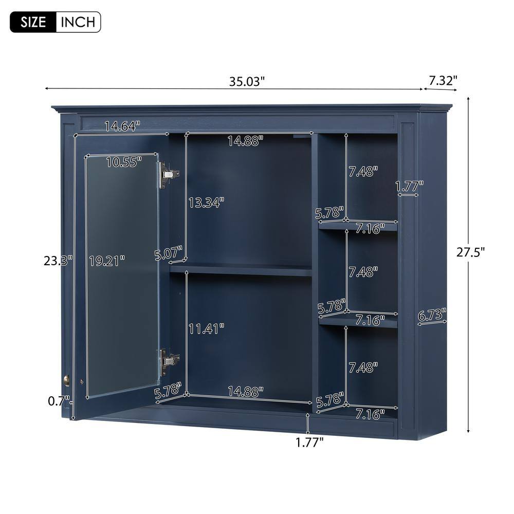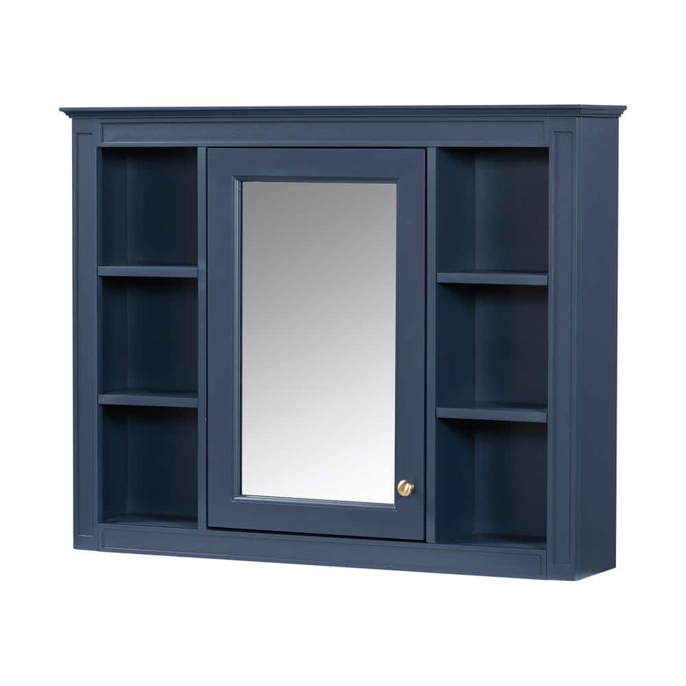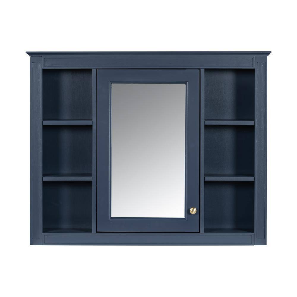 WELLFOR 35 in. W x 27.5 in. H MDF Rectangular Wall Medicine Cabinet with Mirror in Blue