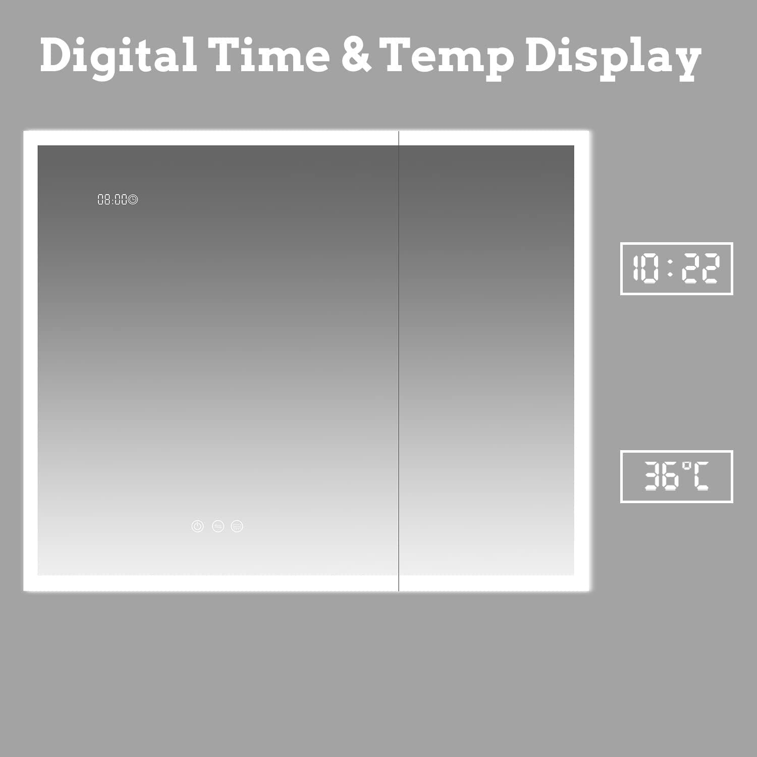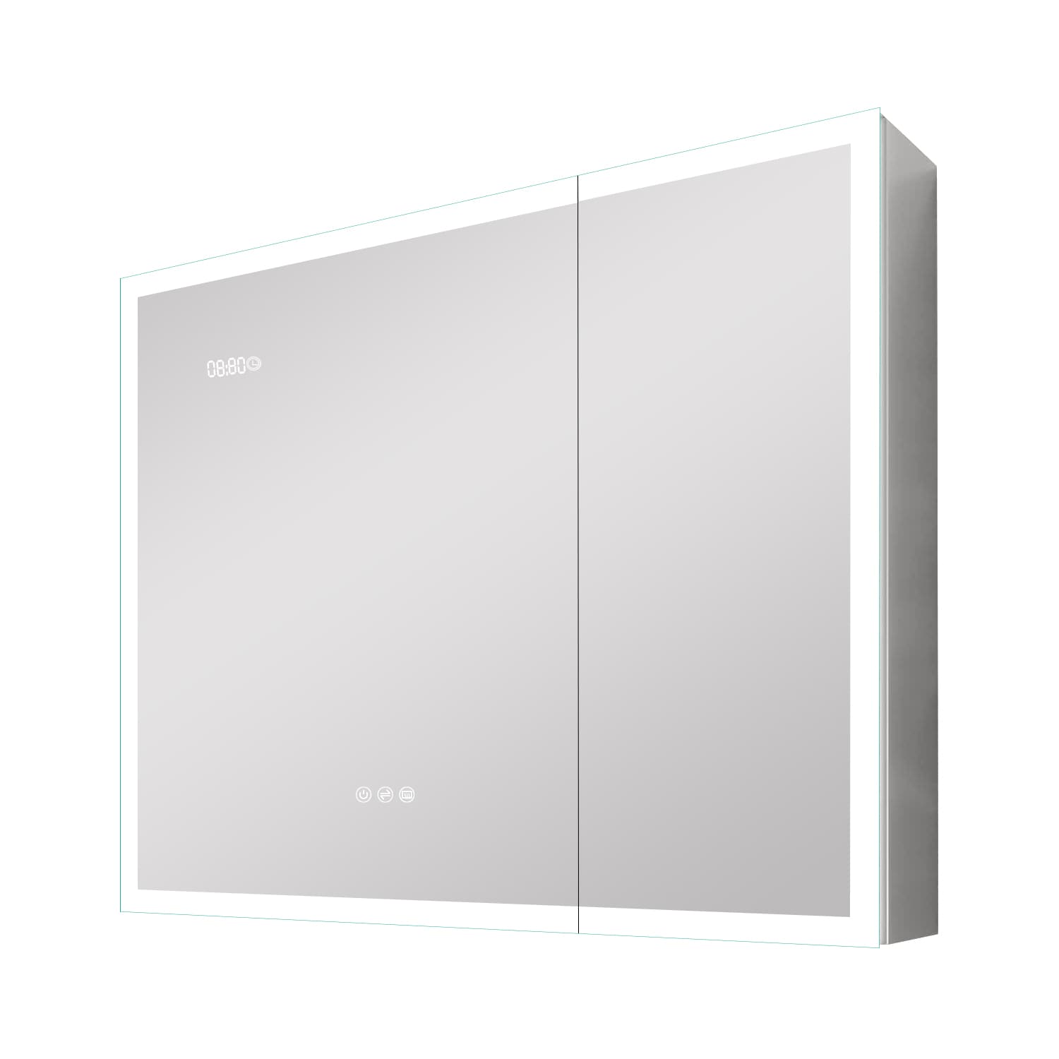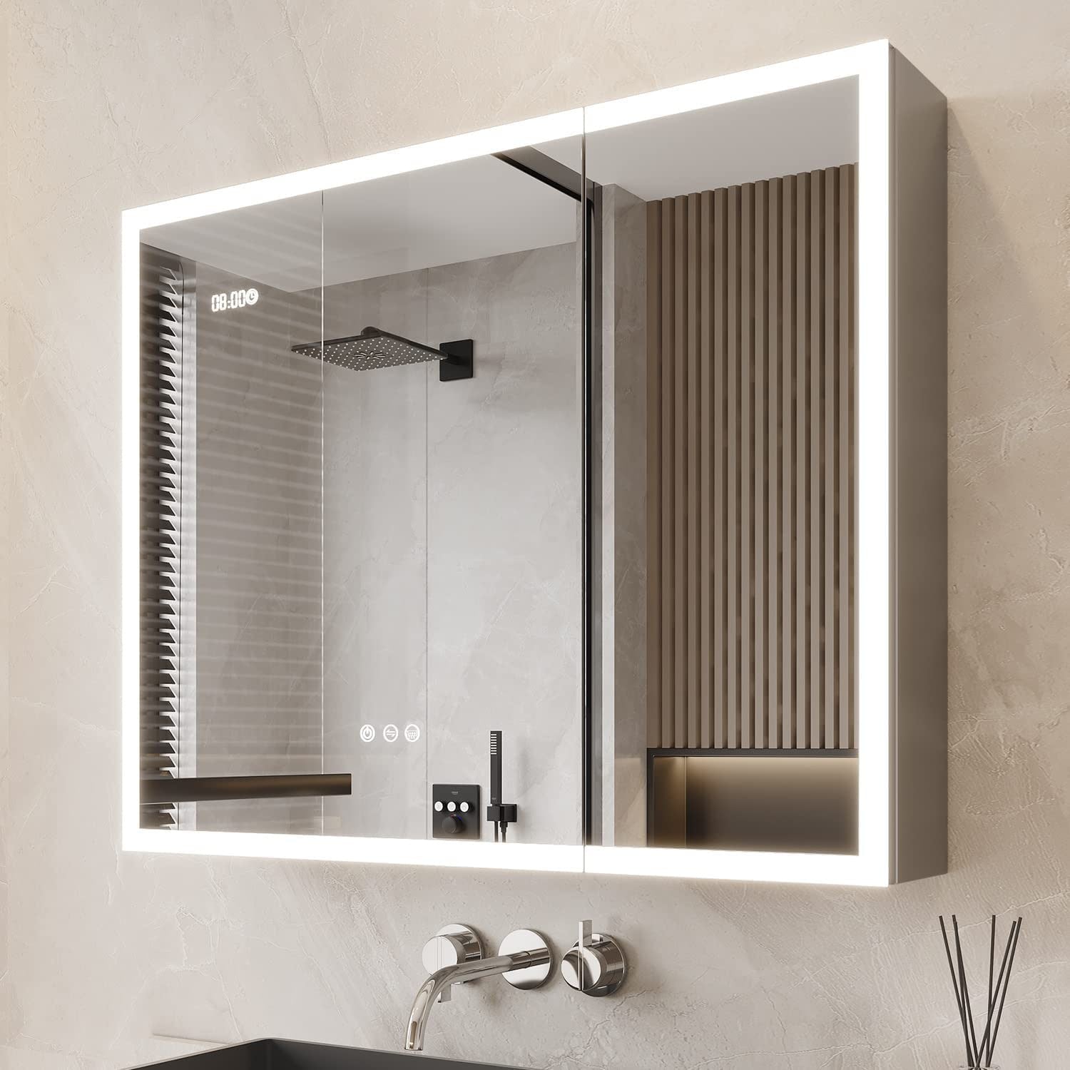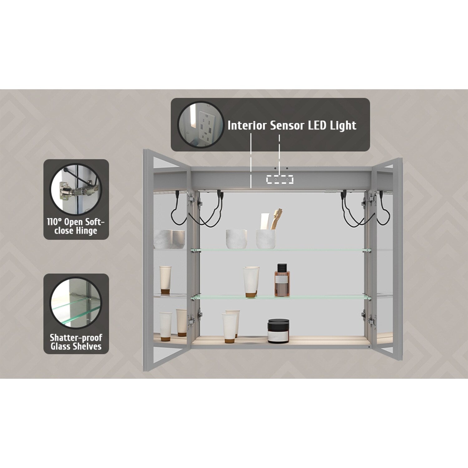WELLFOR 36-in x 30-in Lighted LED Fog Free Surface Mount Silver Mirrored Soft Close Medicine Cabinet with Outlet
