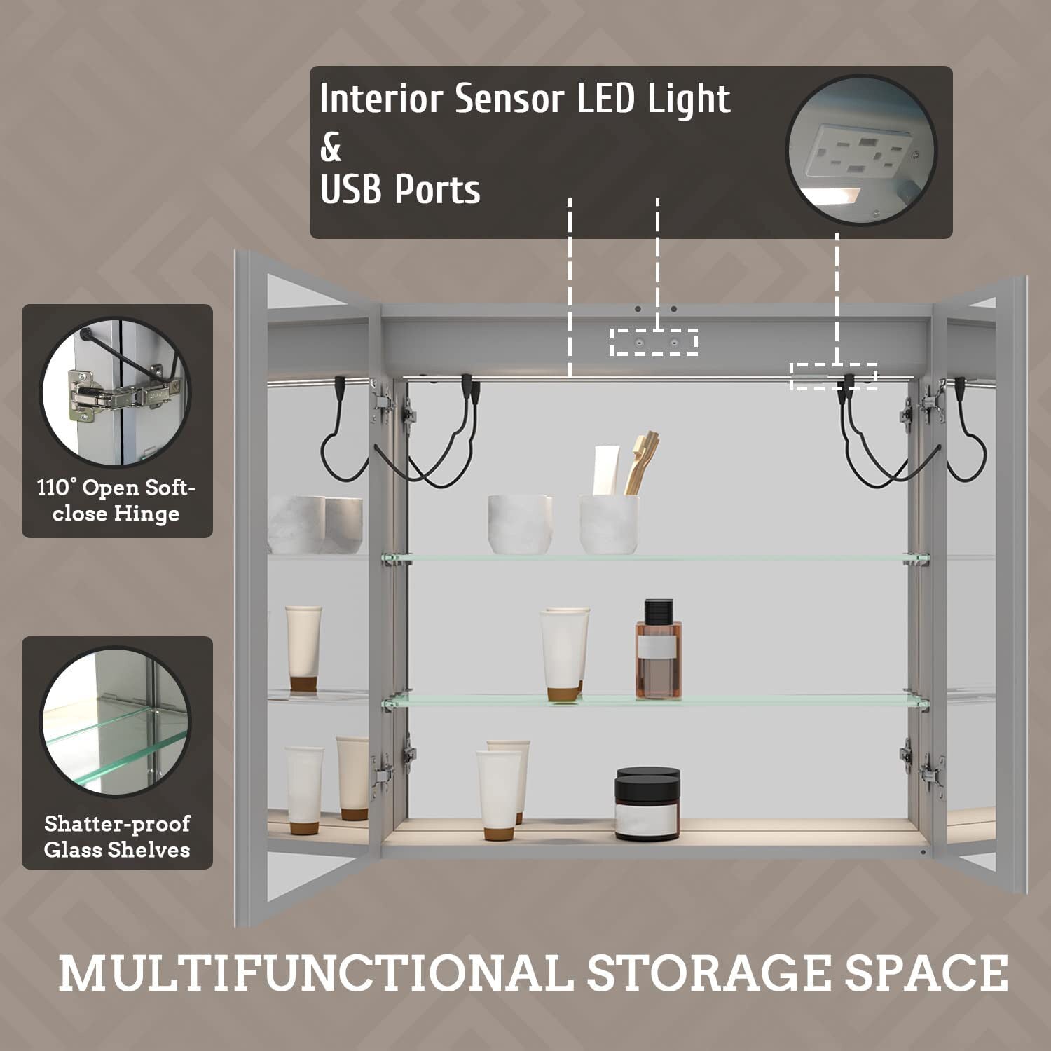 Upgrade your bathroom with the WELLFOR 36" Lighted LED Medicine Cabinet. This sleek and modern cabinet features fog-free LED lighting, soft-close doors, and built-in outlets for convenience. Ideal for a polished and functional bathroom oasis.