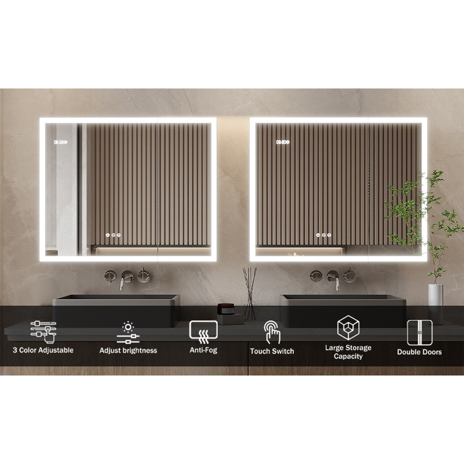 Transform your bathroom into an opulent retreat with the WELLFOR LED Medicine Cabinet. Its frameless design exudes contemporary elegance, allowing the detailed LED lighting to captivate and enhance your daily routine. The ingenious built-in outlets and ambient lighting present an entwined convenience and style, unmatched in functional design. Position this cabinet to anchor your room, establishing a haven of sophistication and everyday indulgence, vital to any luxurious bath setting.