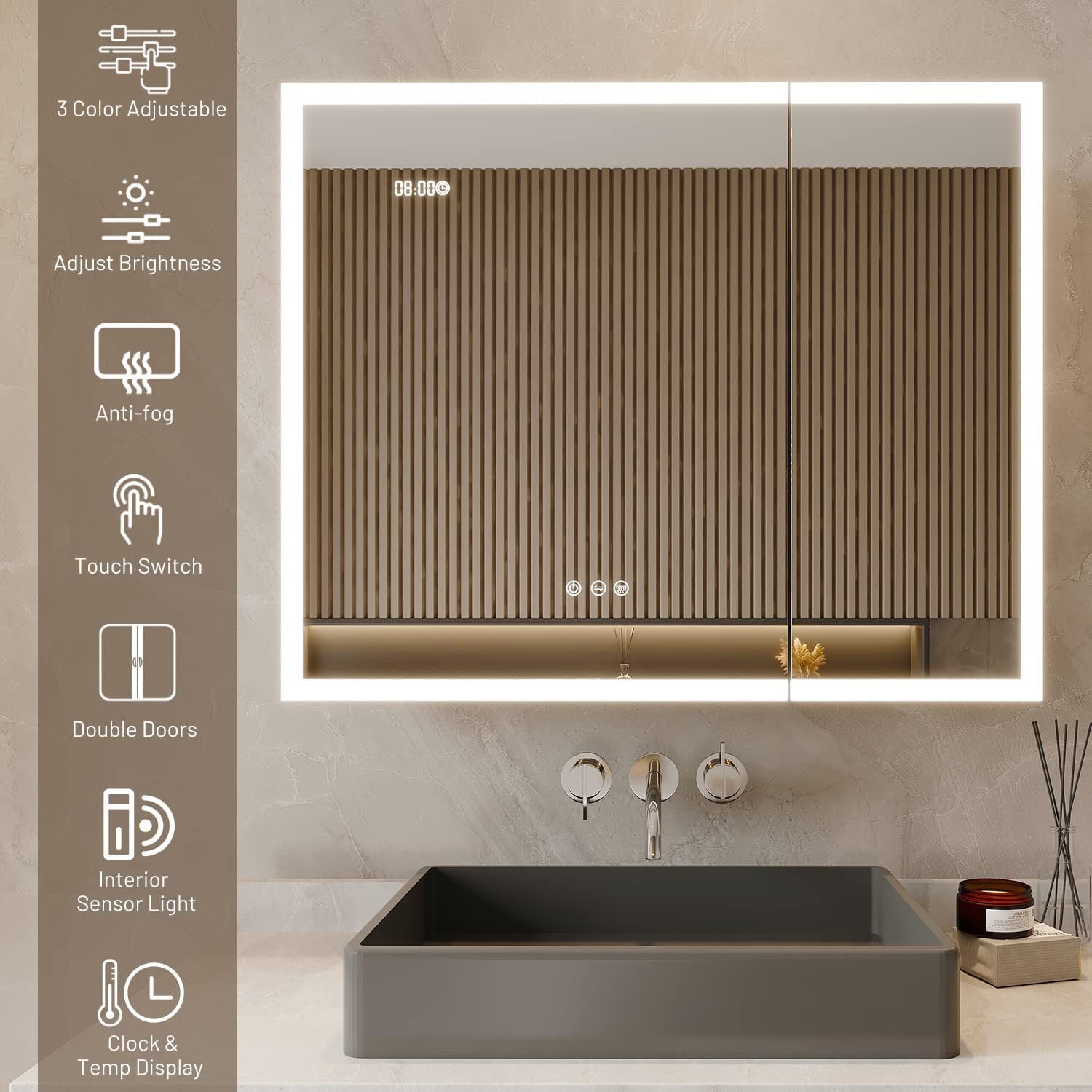 WELLFOR 36" Lighted LED Medicine Cabinet