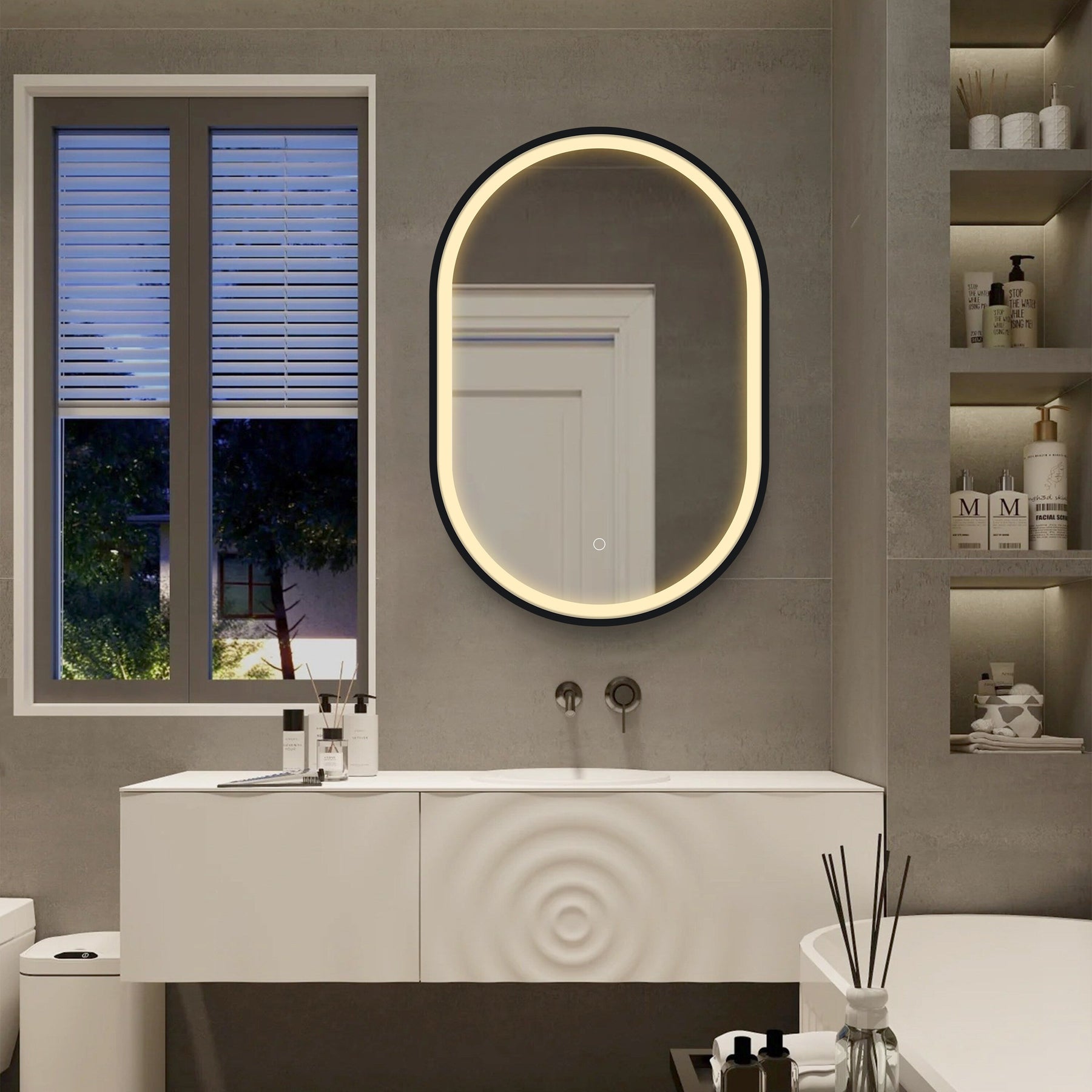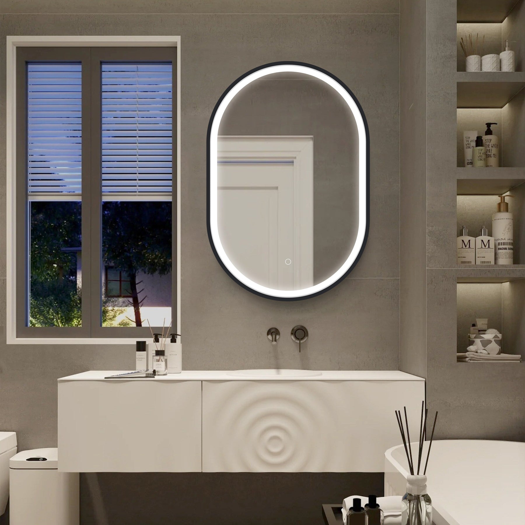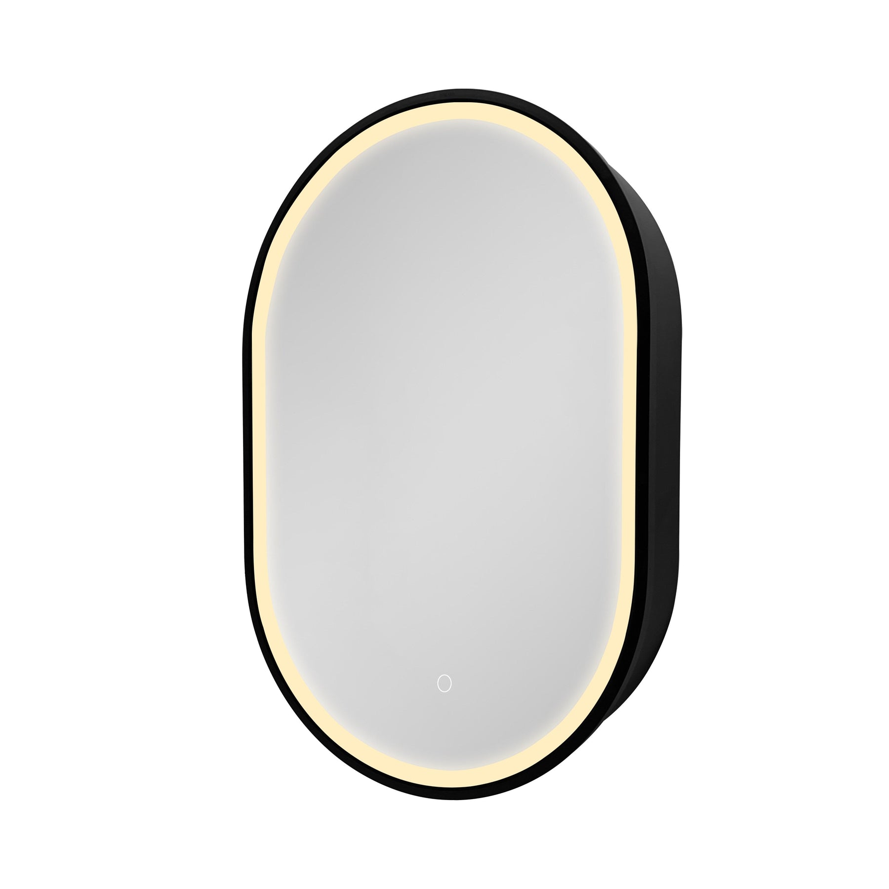 The WELLFOR AO Lighted LED Medicine Cabinet combines elegance and functionality. This sleek, black steel oval cabinet features fog-free technology and adjustable LED lighting, creating the perfect bathroom centerpiece. Enhance your space with its soft-close mechanism and ample storage for a clutter-free environment.