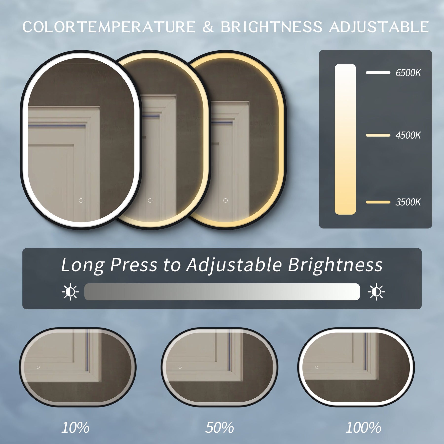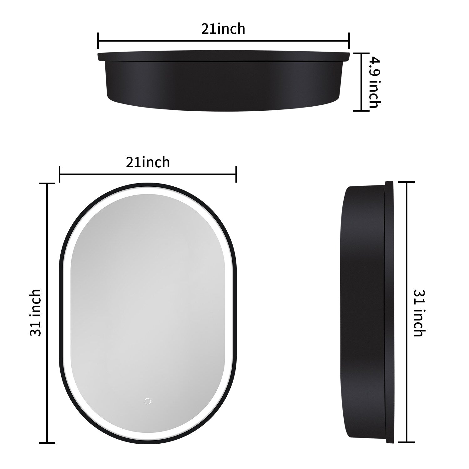 WELLFOR AO 21-in x 31-in Lighted LED Fog Free Surface Mount Black Mirrored Oval Soft Close Medicine Cabinet