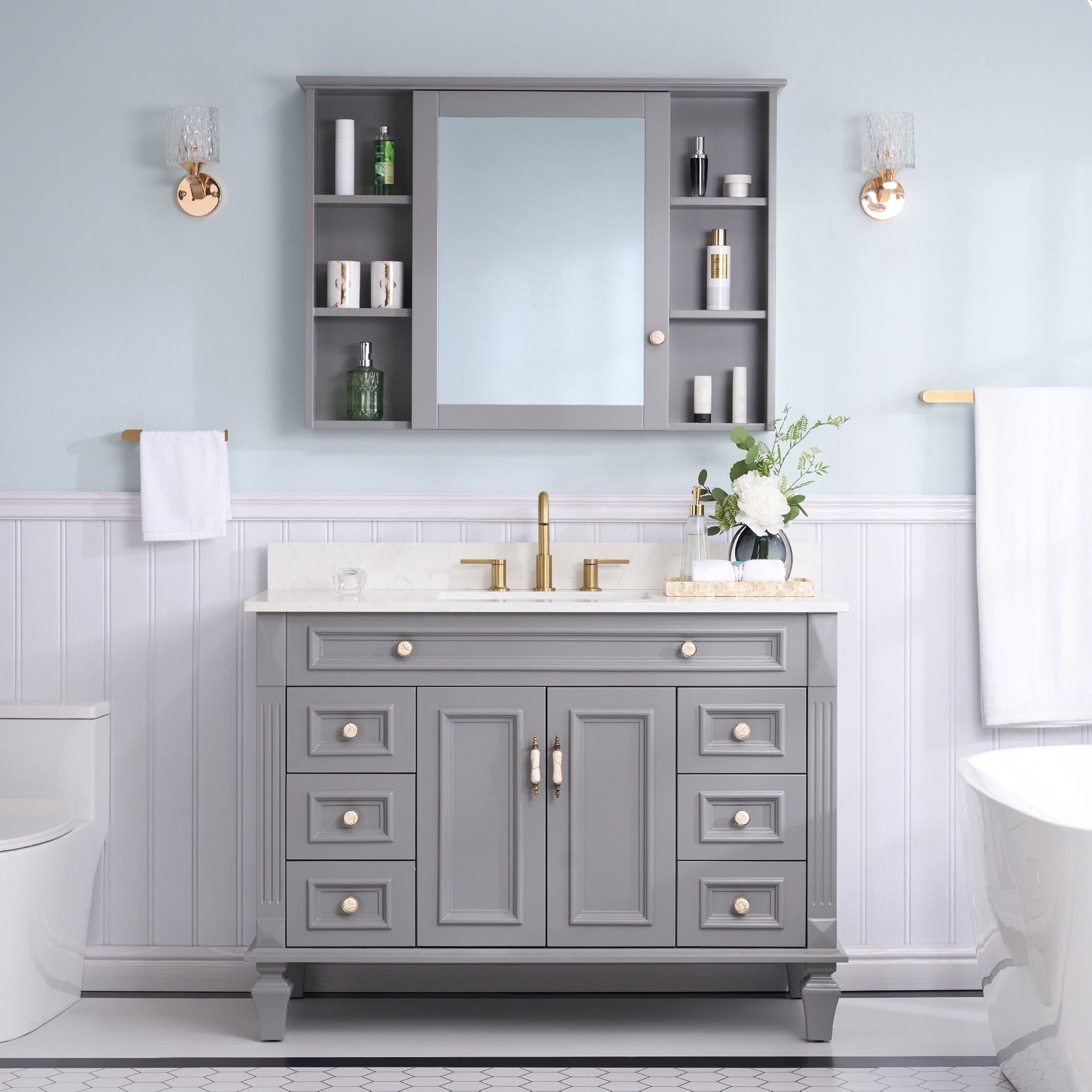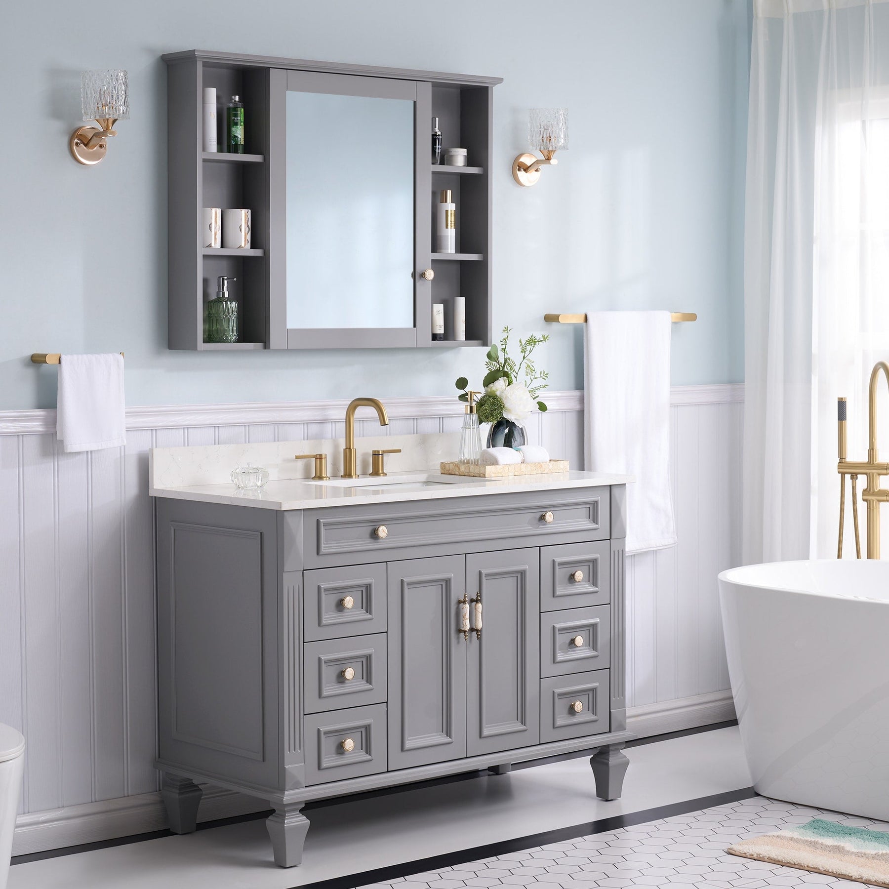 42-inch Gray Solid Wood Medicine Cabinet with Mirror