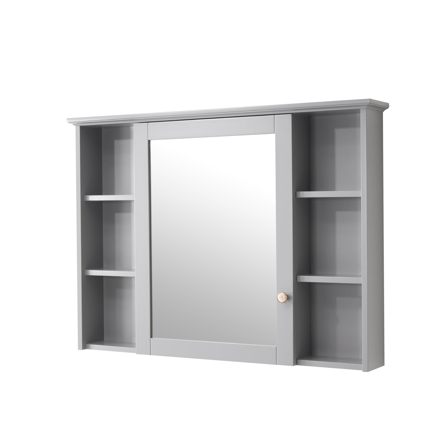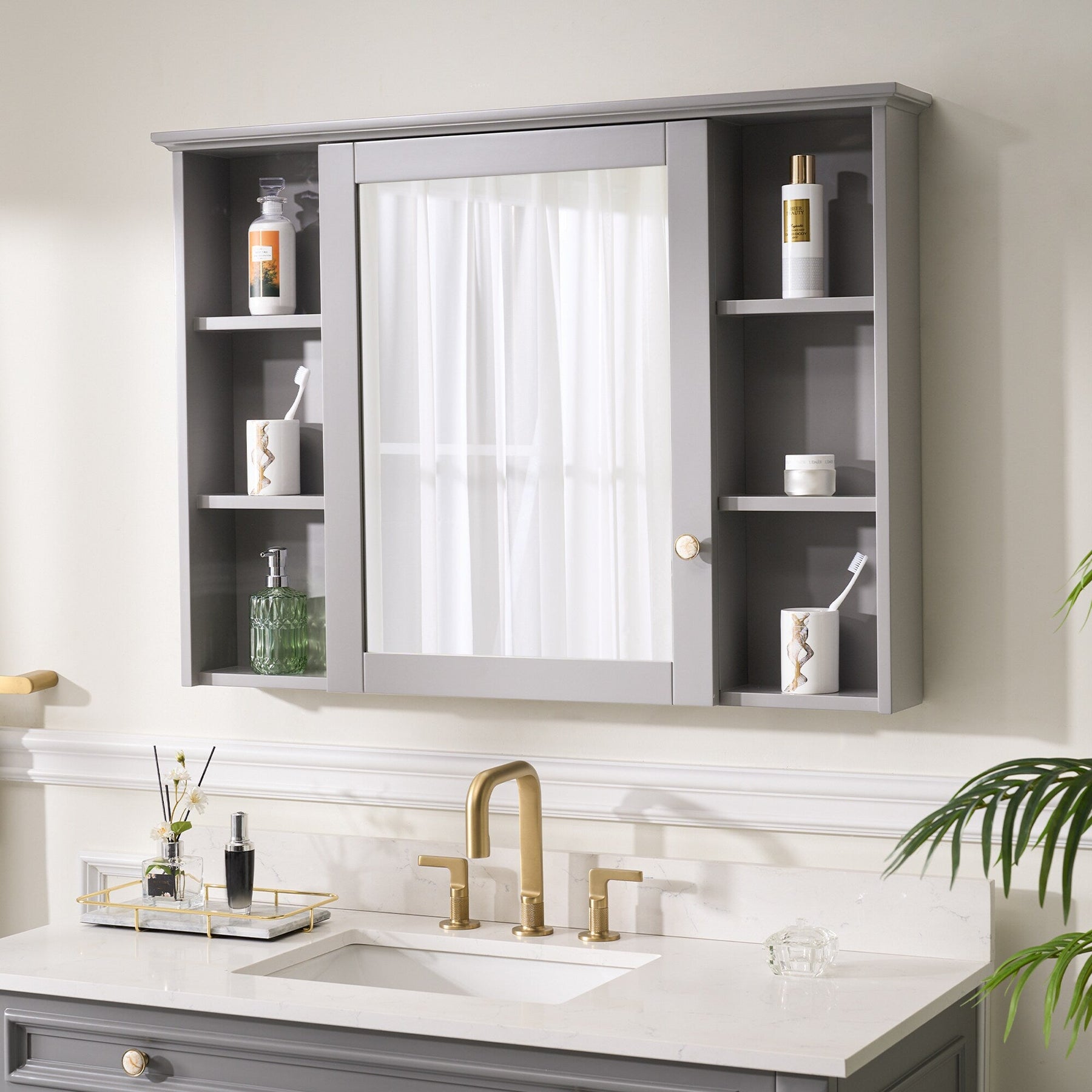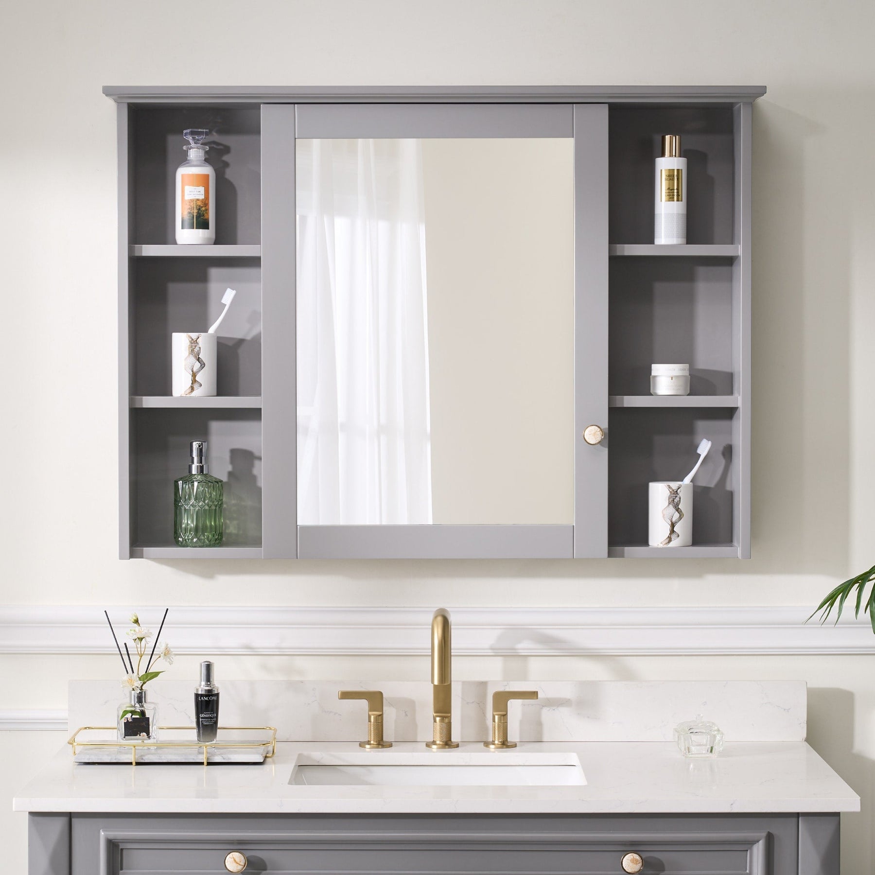WELLFOR ART Solid Wood 42-in x 30-in Surface Mount Gray Mirrored Soft Close Medicine Cabinet