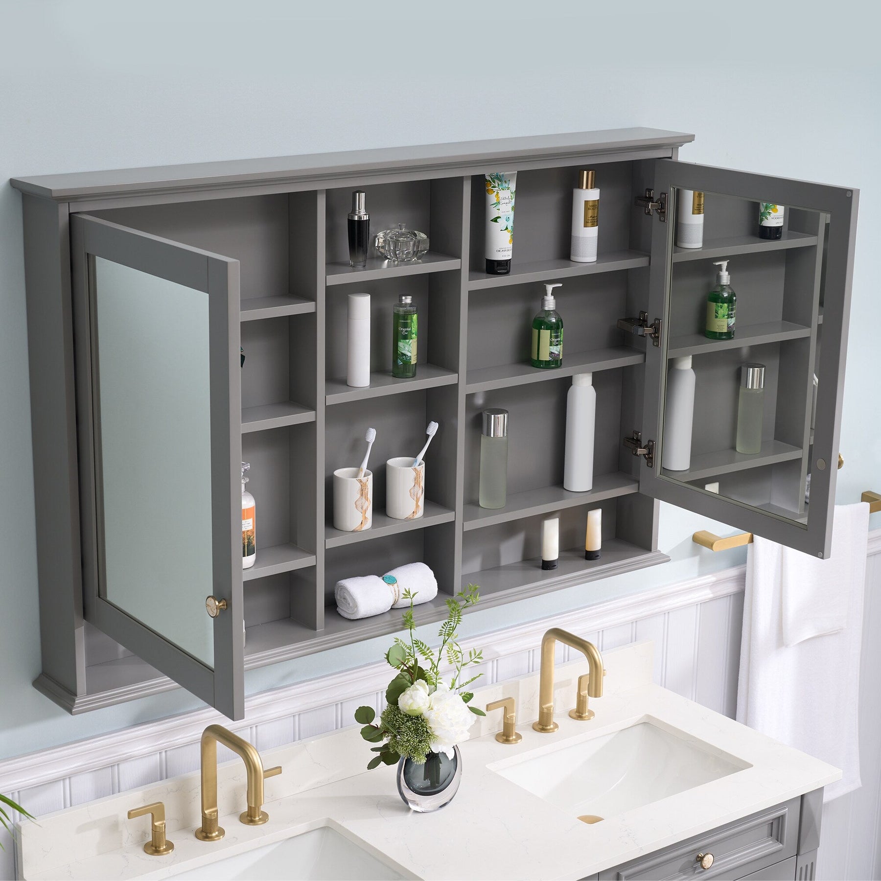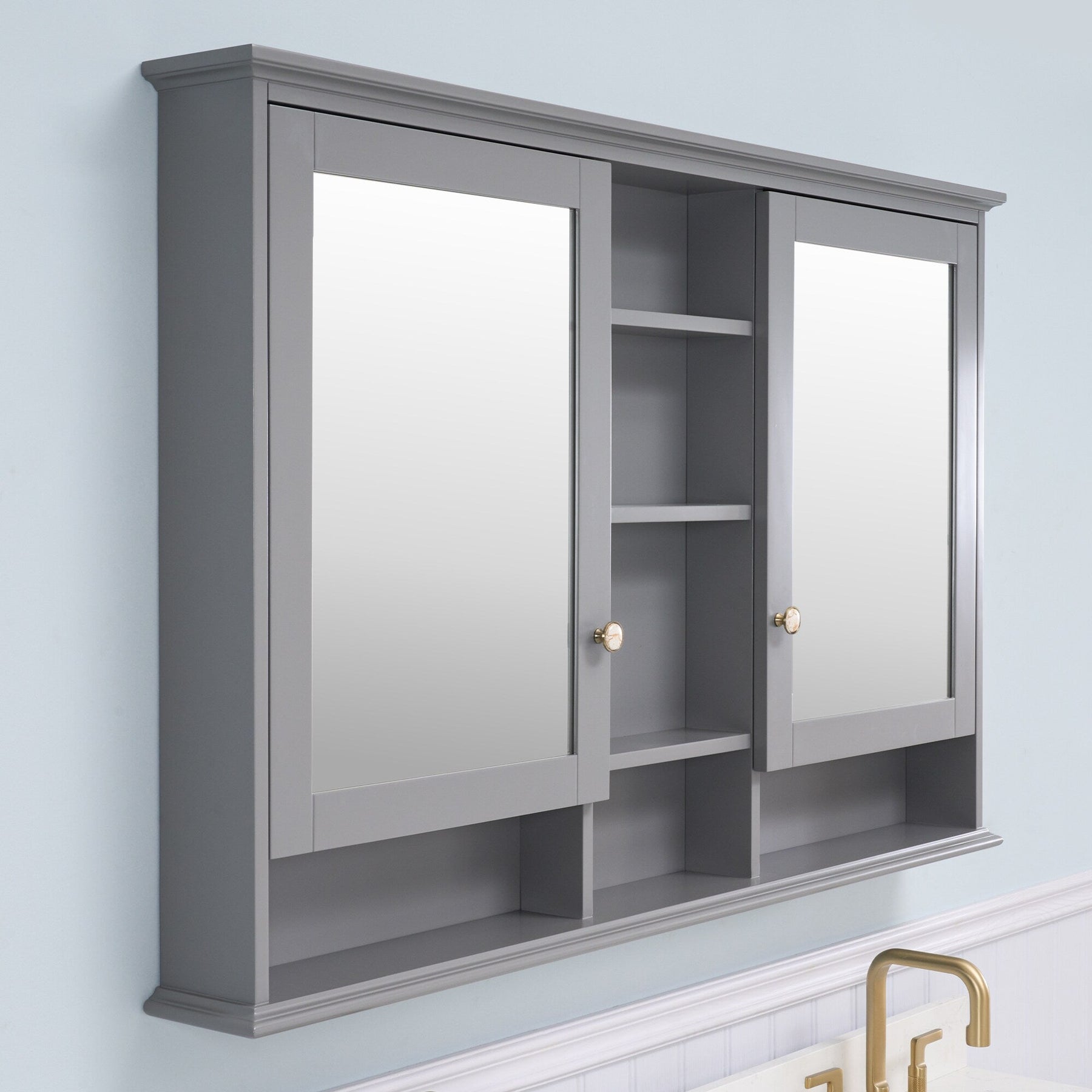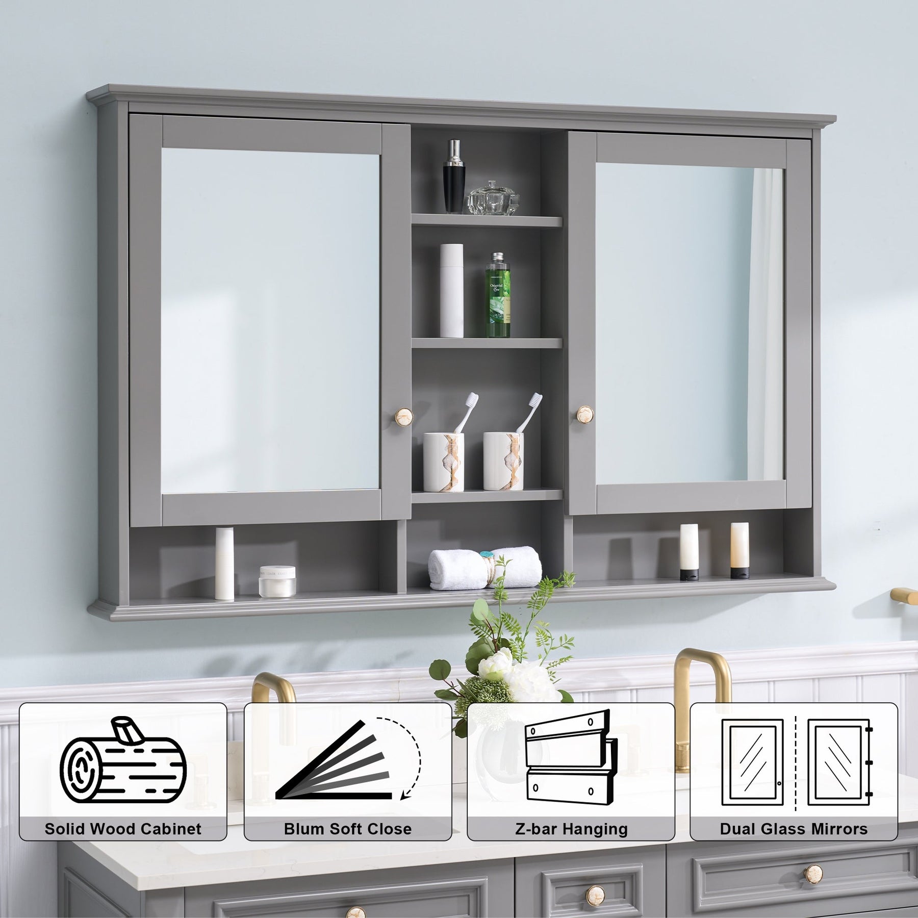 WELLFOR ART Solid Wood 55-in x 35-in Surface Mount Gray Mirrored Soft Close Medicine Cabinet