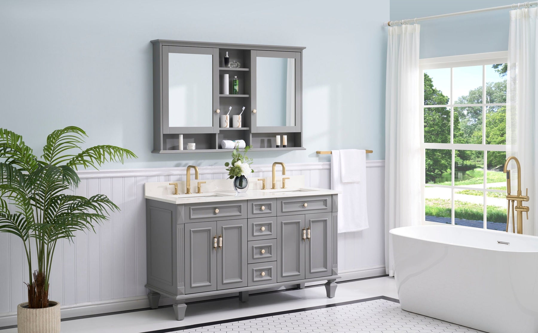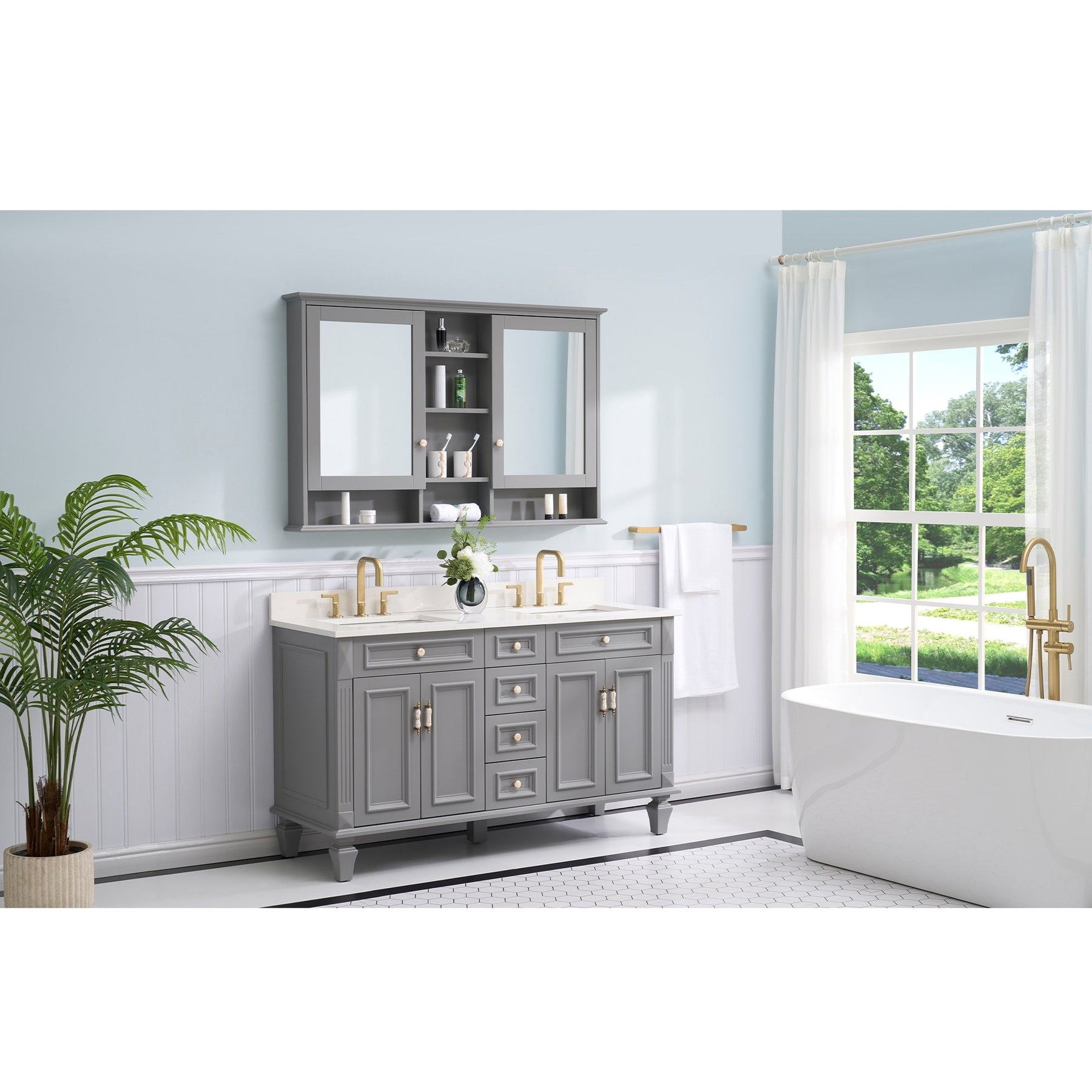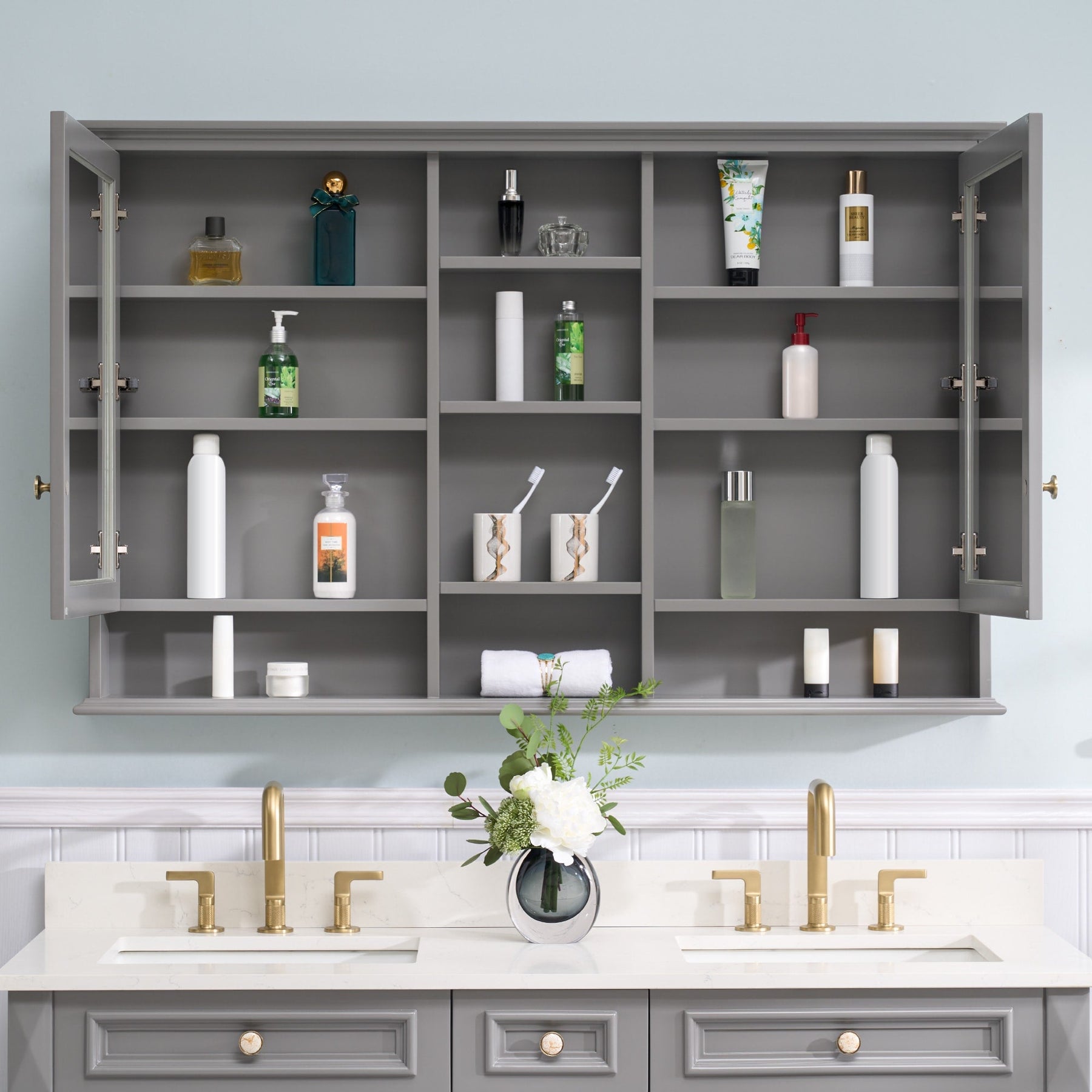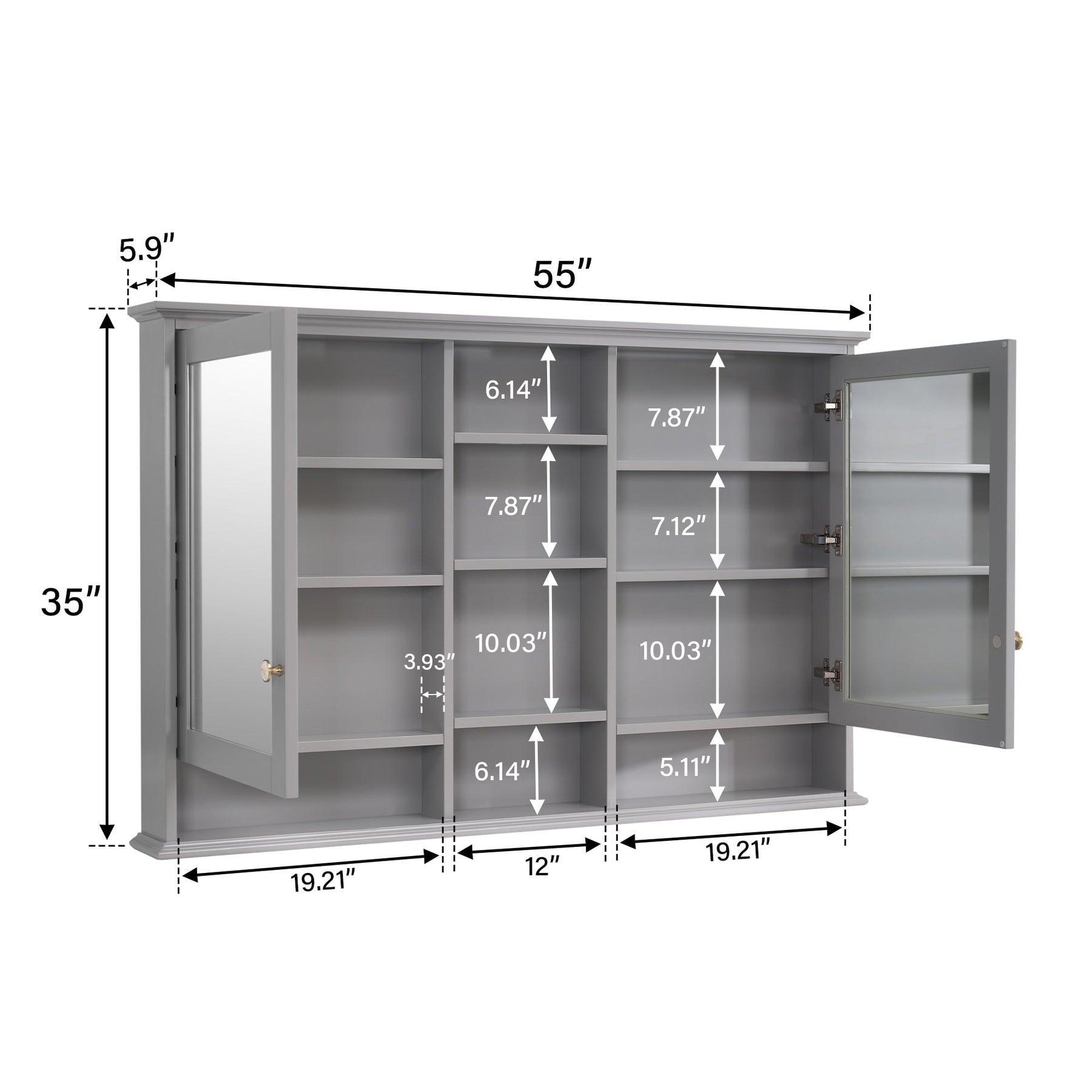 WELLFOR ART Solid Wood 55-in x 35-in Surface Mount Gray Mirrored Soft Close Medicine Cabinet