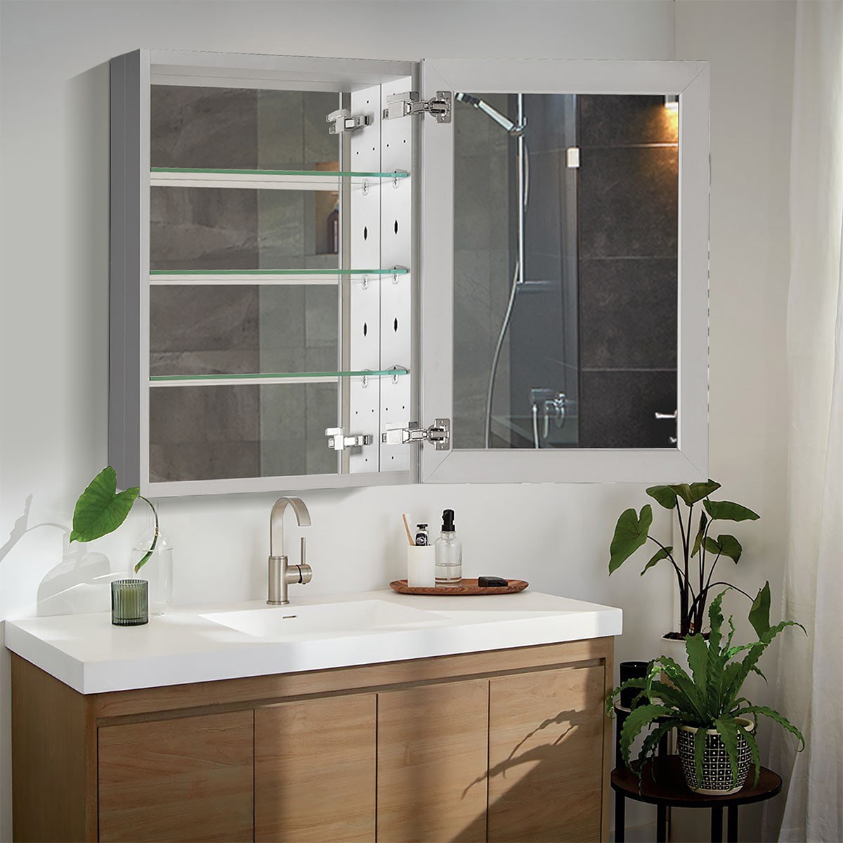 Elevate your bathroom with the WELLFOR Soft Close Medicine Cabinet, showcasing a sleek satin aluminum frame. Its double-mirrored design and premium Blum hinges ensure both style and functionality, making it a smart choice for enhancing storage and elegance in compact spaces.