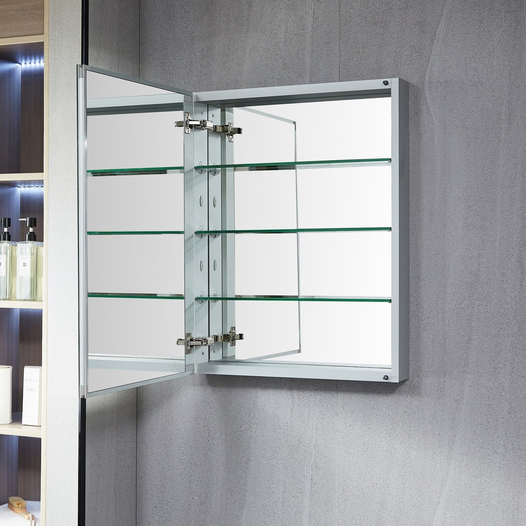 WELLFOR DH 23-in x 30-in Surface/Recessed Mount Satin Aluminum Mirrored Soft Close Medicine Cabinet