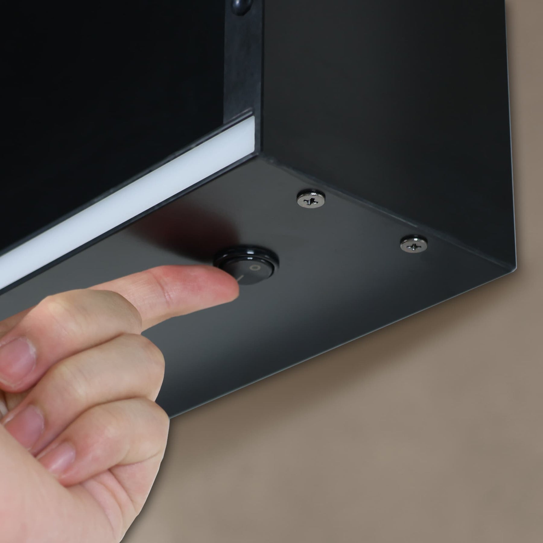 A: The LED light strip is operated using a convenient infrared touch switch located inside the cabinet.