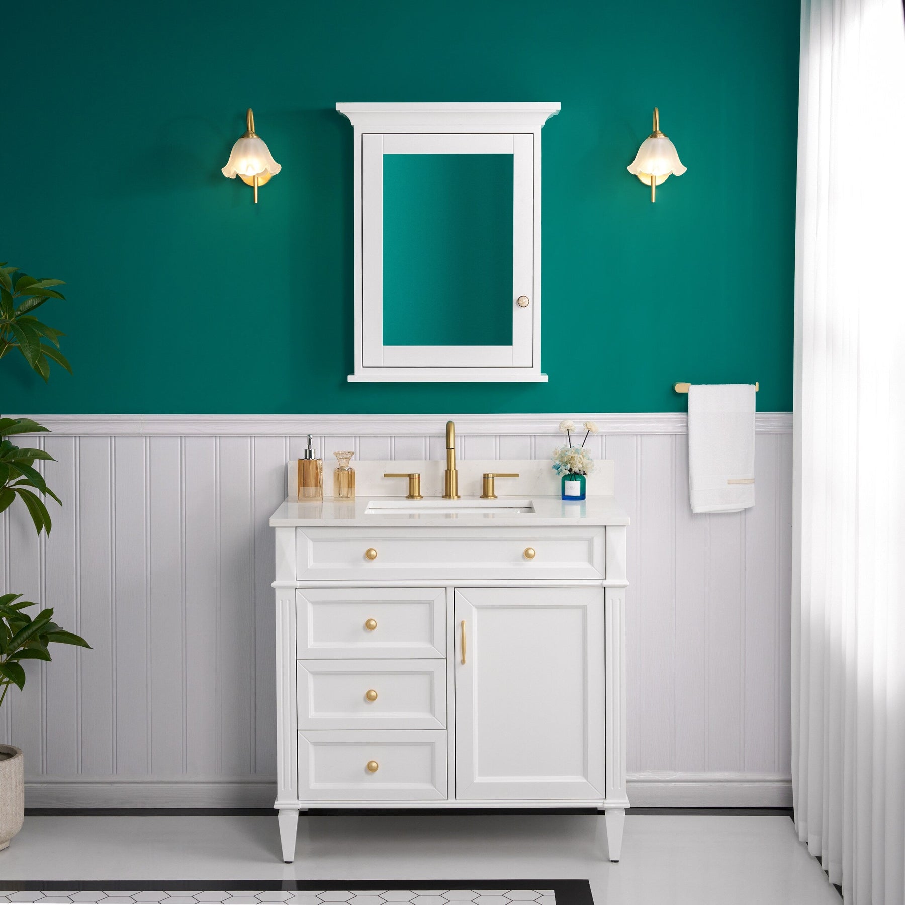WELLFOR GRACE Solid Wood 24-in x 30-in Surface Mount White Mirrored Soft Close Medicine Cabinet