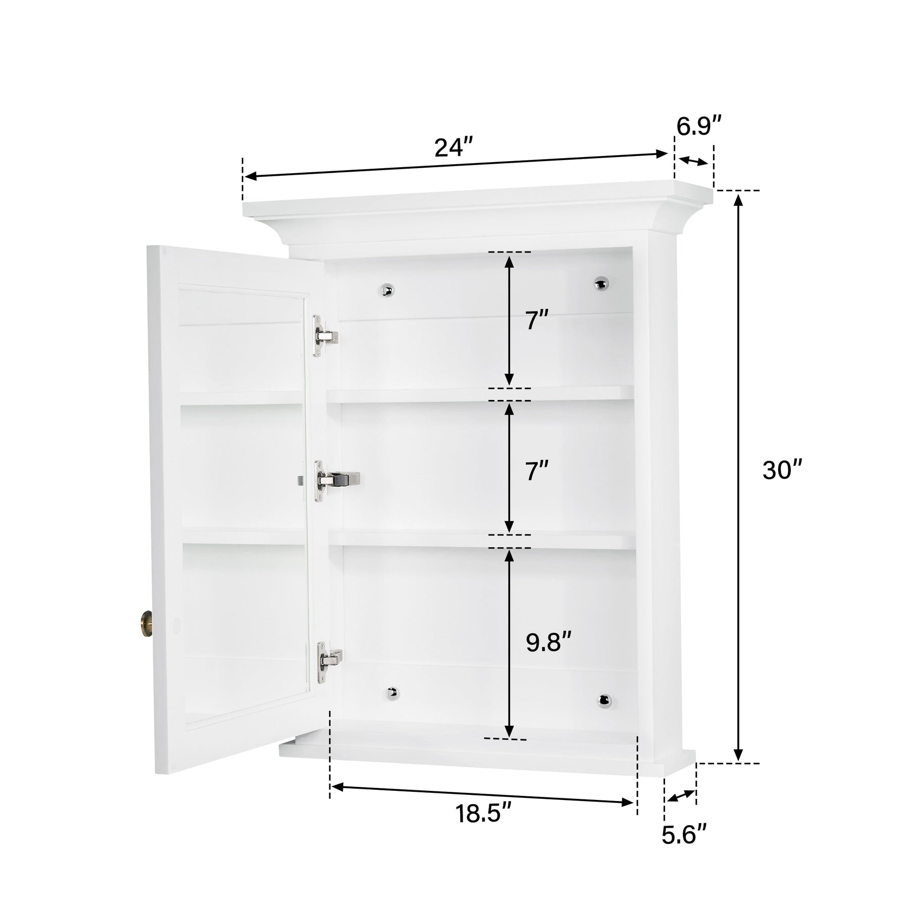WELLFOR GRACE Solid Wood 24-in x 30-in Surface Mount White Mirrored Soft Close Medicine Cabinet