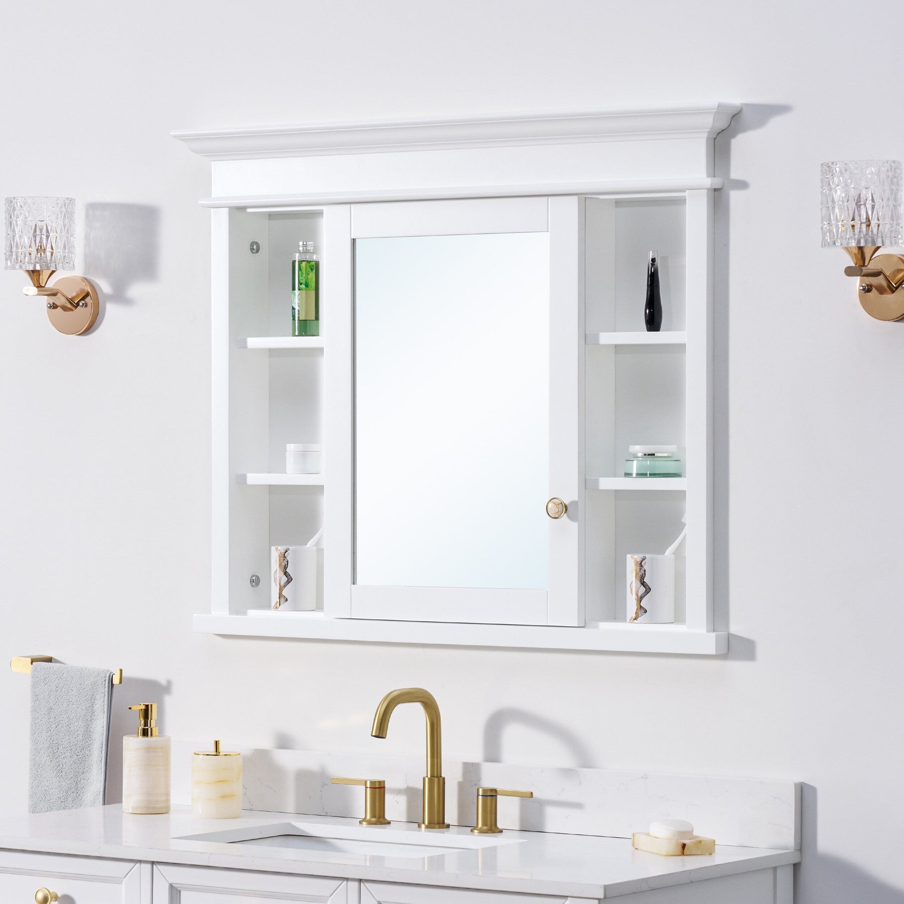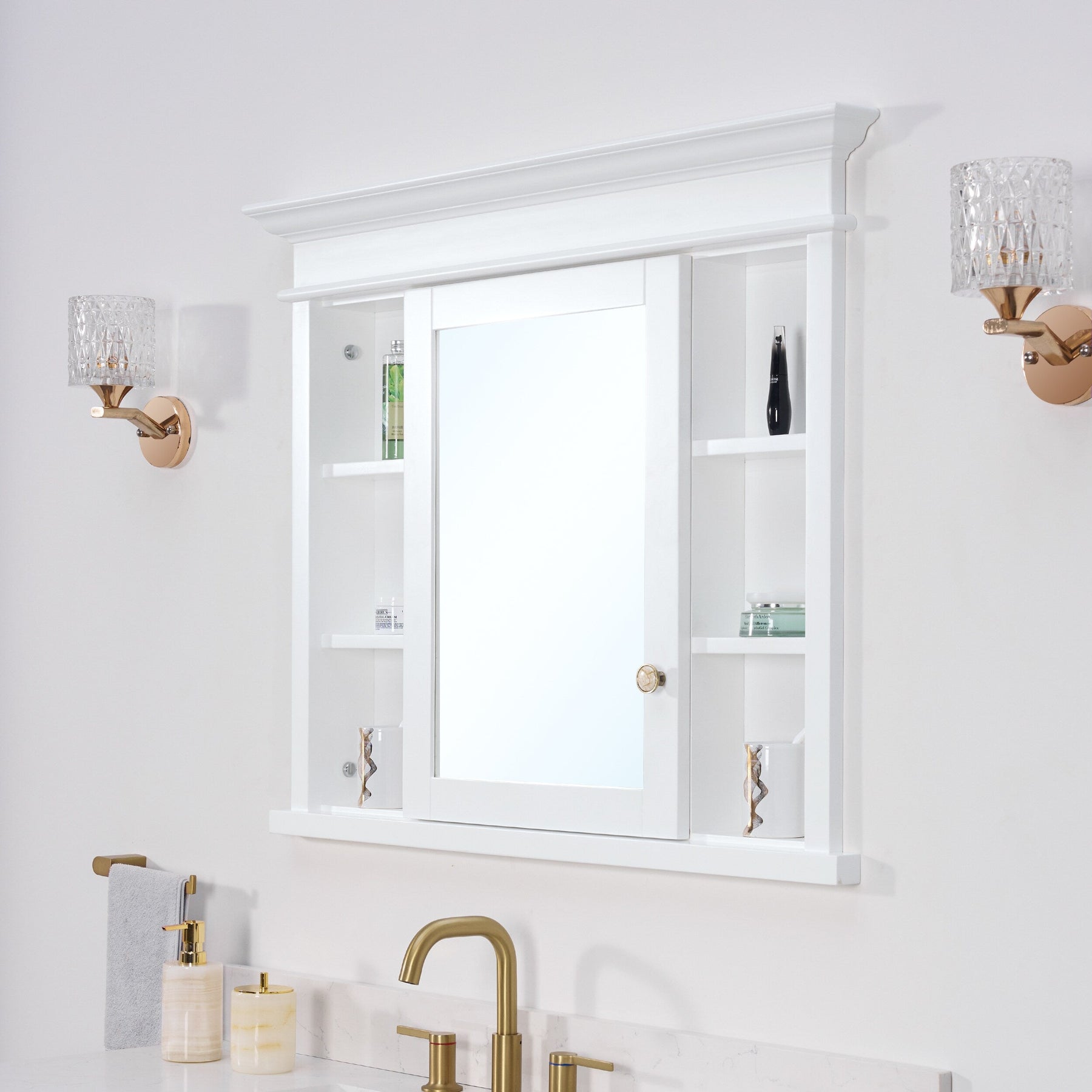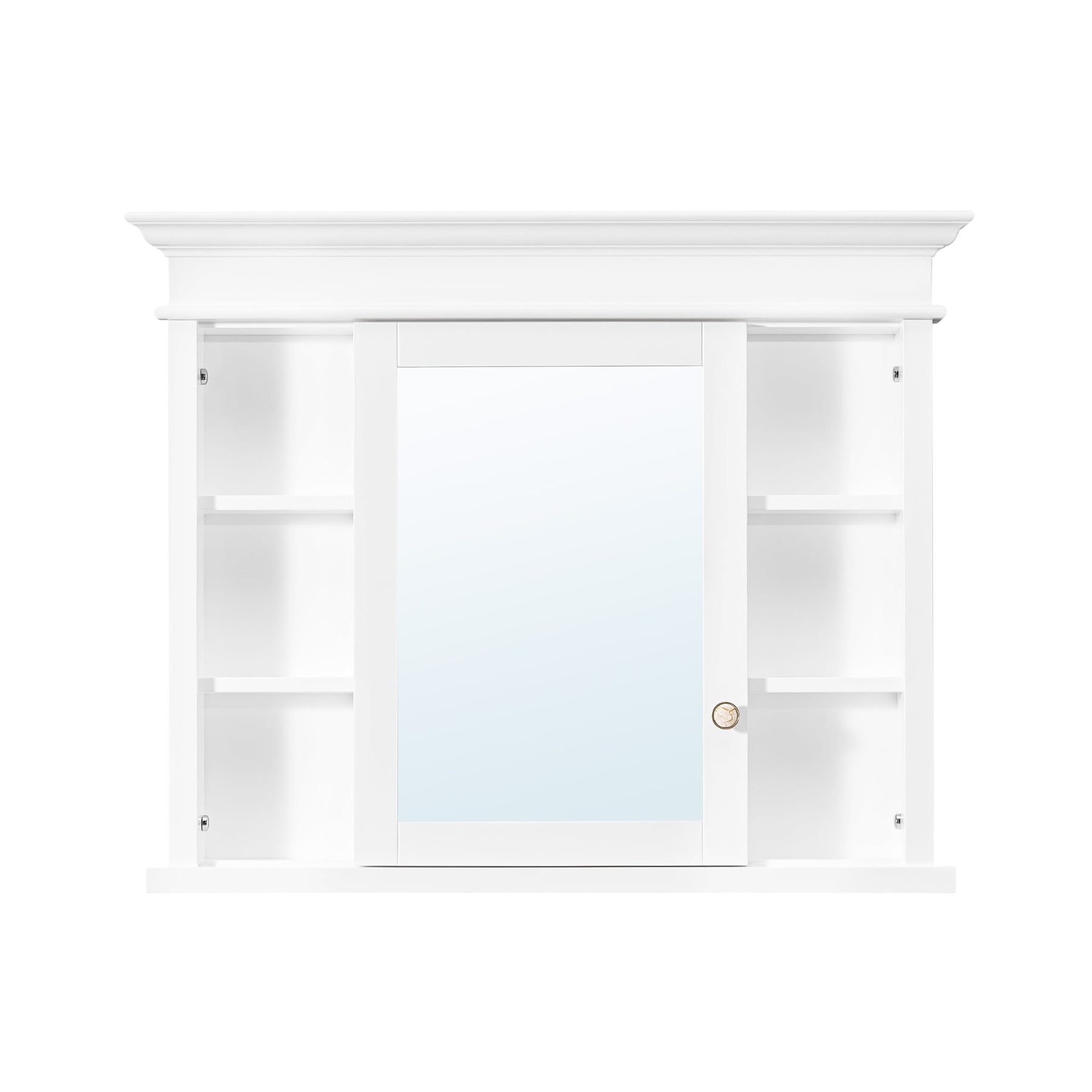 Transform your bathroom into a haven of serenity with the WELLFOR GRACE Medicine Cabinet. Crafted from sumptuous solid wood, this cabinet marries classic design with modern functionality. Its mirrored front not only expands your space visually, but also adds a touch of elegance. Pair it with chrome fixtures or against a deep-colored wall to accentuate its pristine white finish. This medicine cabinet becomes an essential piece in curating an indulgent bathroom environment.