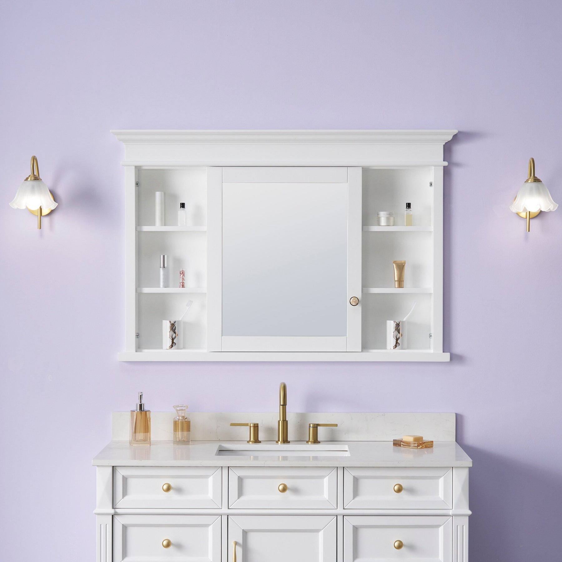 The WELLFOR GRACE Medicine Cabinet is more than a storage solution; it's a masterpiece of elegance within your bathroom sanctuary. Envision its pristine white frame reflecting natural light, accentuating the purity of your space. The interplay of solid wood and sophisticated porcelain hardware invites a timeless allure. Imagine this cabinet elegantly displaying cherished apothecary jars on its refined shelves. With its seamless, recess-mounted design, it transforms ordinary mornings into a luxurious routine, embodying a harmonious blend of sophistication and practicality.