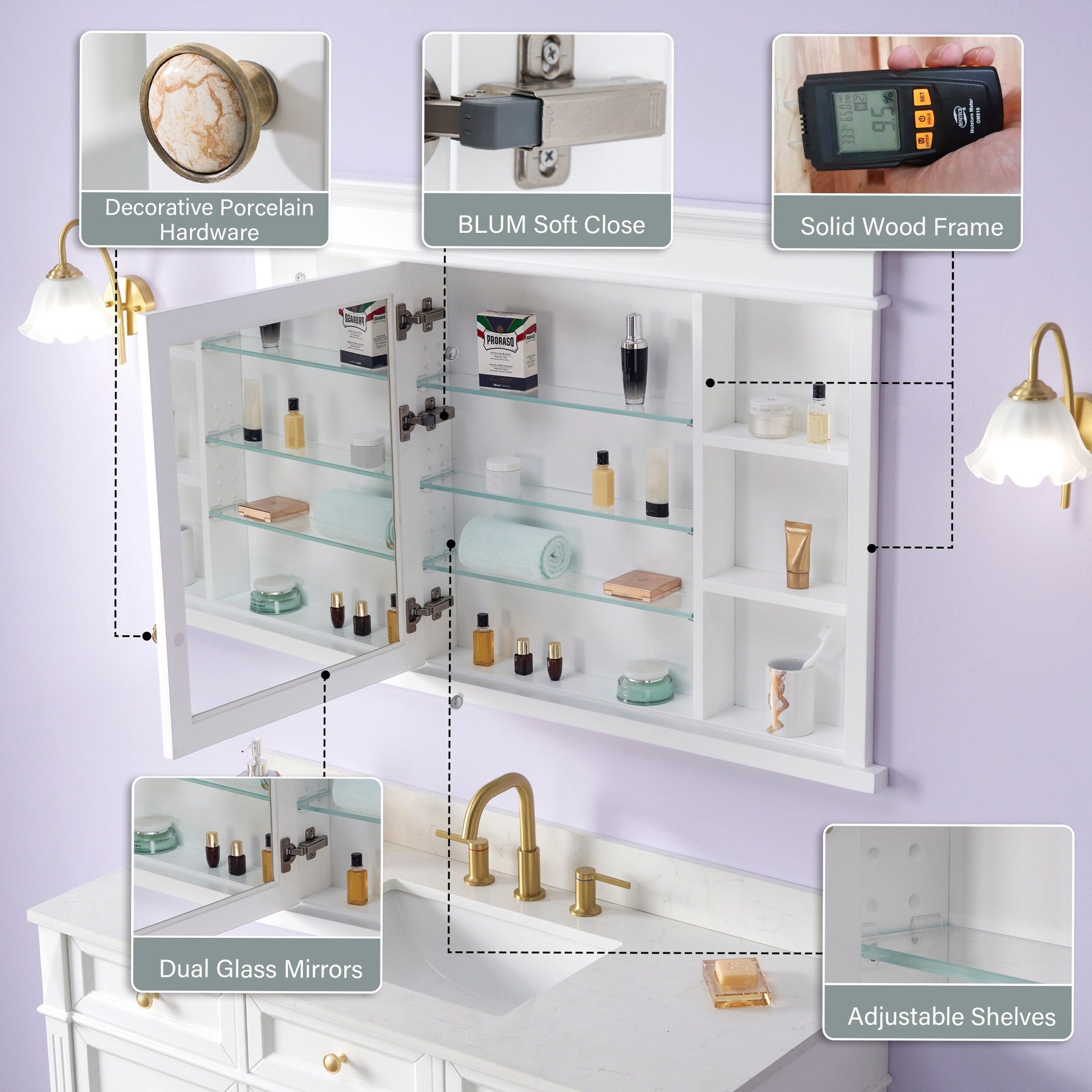 • Soft-Close Door: Features Austria BLUM soft-close hinges for quiet and gentle closure.