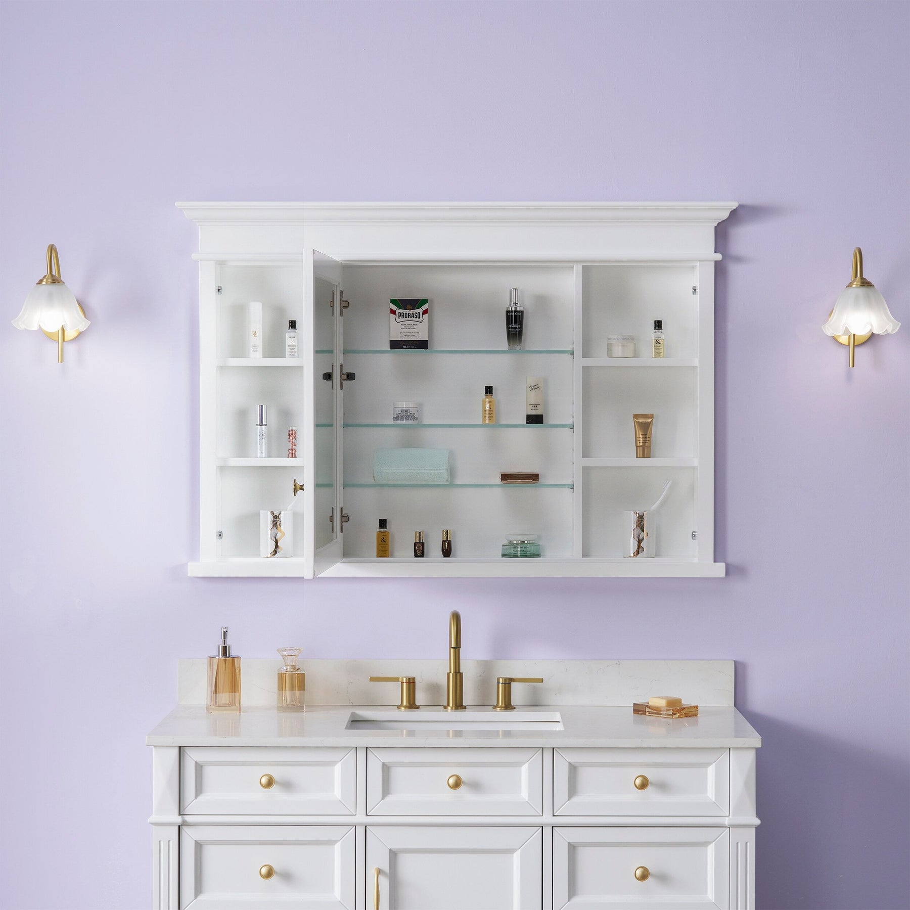 WELLFOR GRACE Solid Wood 48-in x 32-in Recessed Mount White Mirrored Soft Close Medicine Cabinet