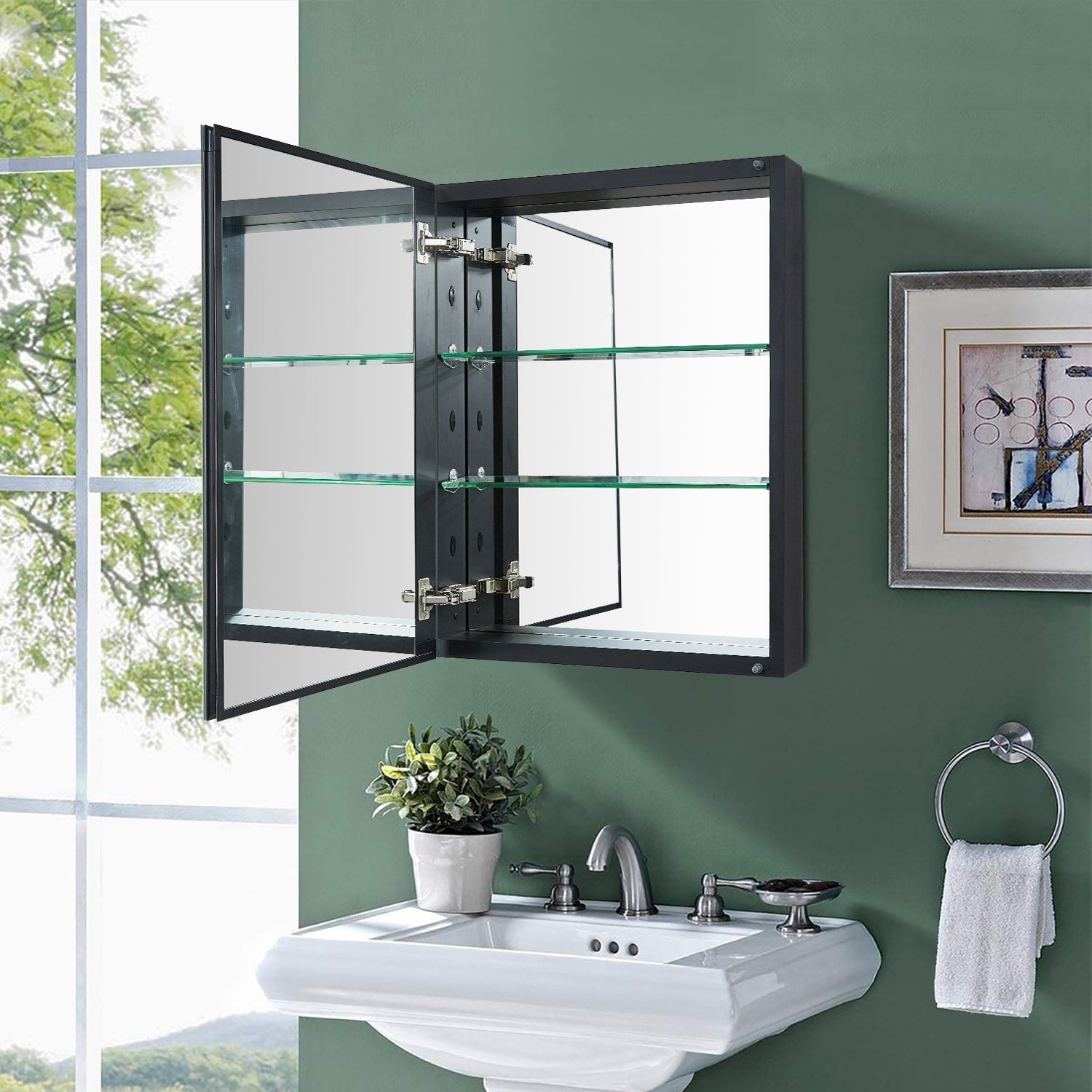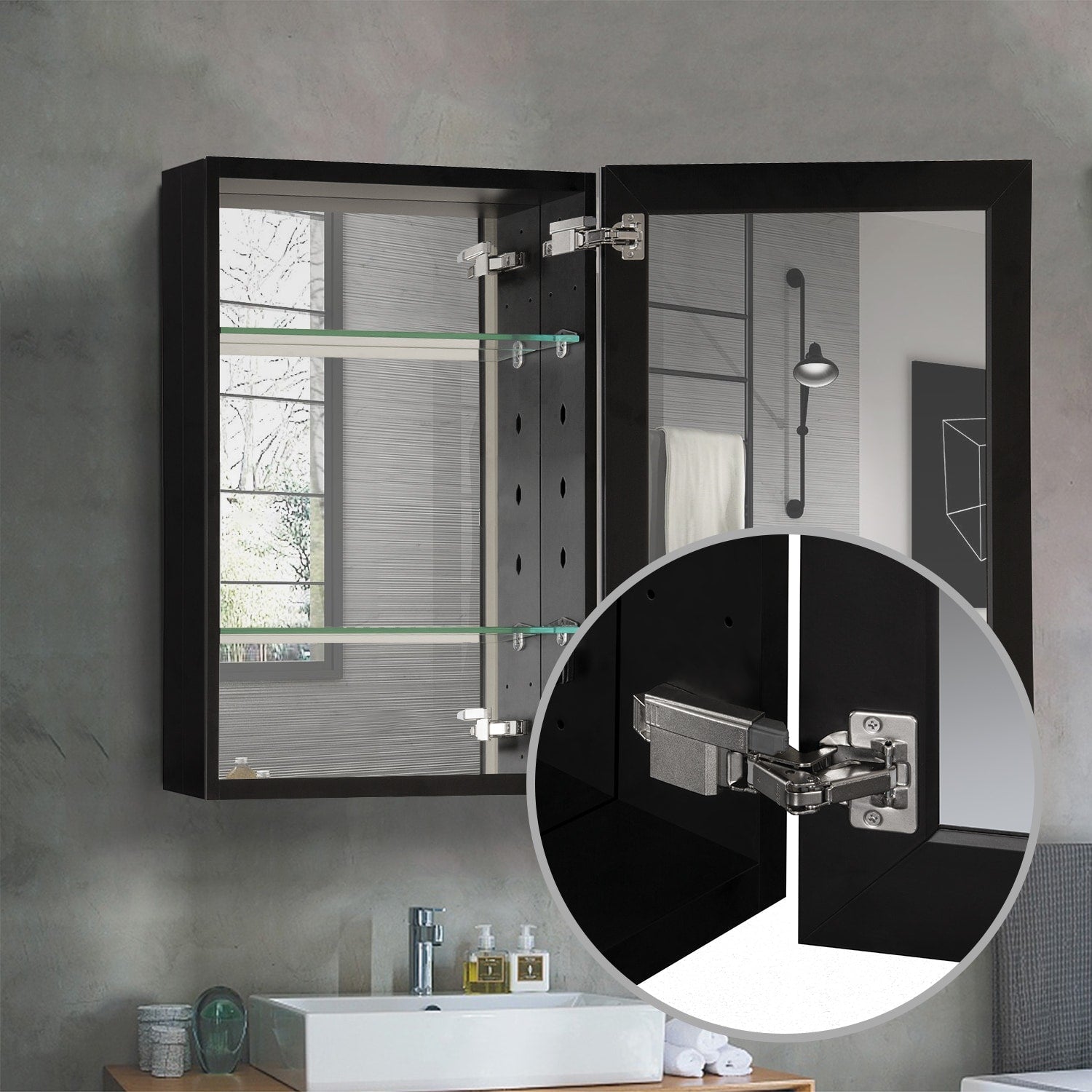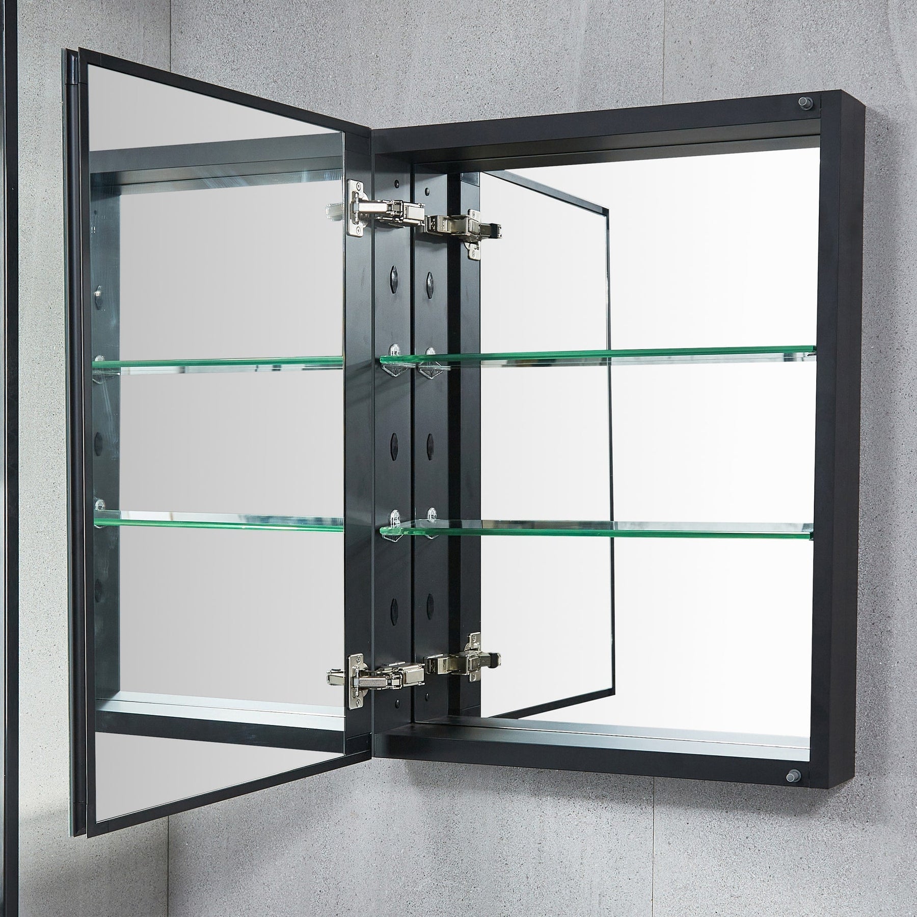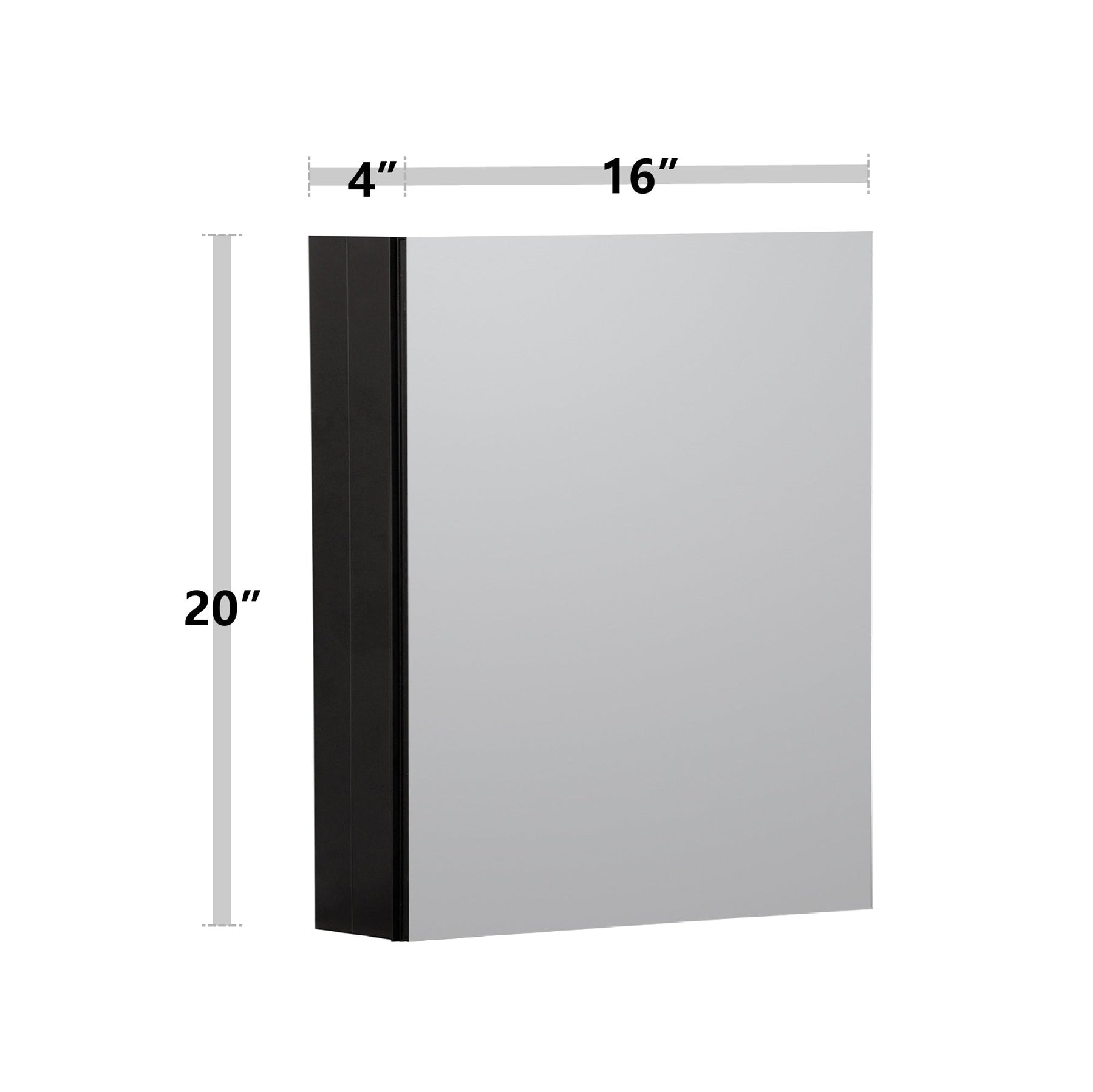 WELLFOR KAIF 16-in x 20-in Surface/Recessed Mount Black Mirrored Soft Close Medicine Cabinet