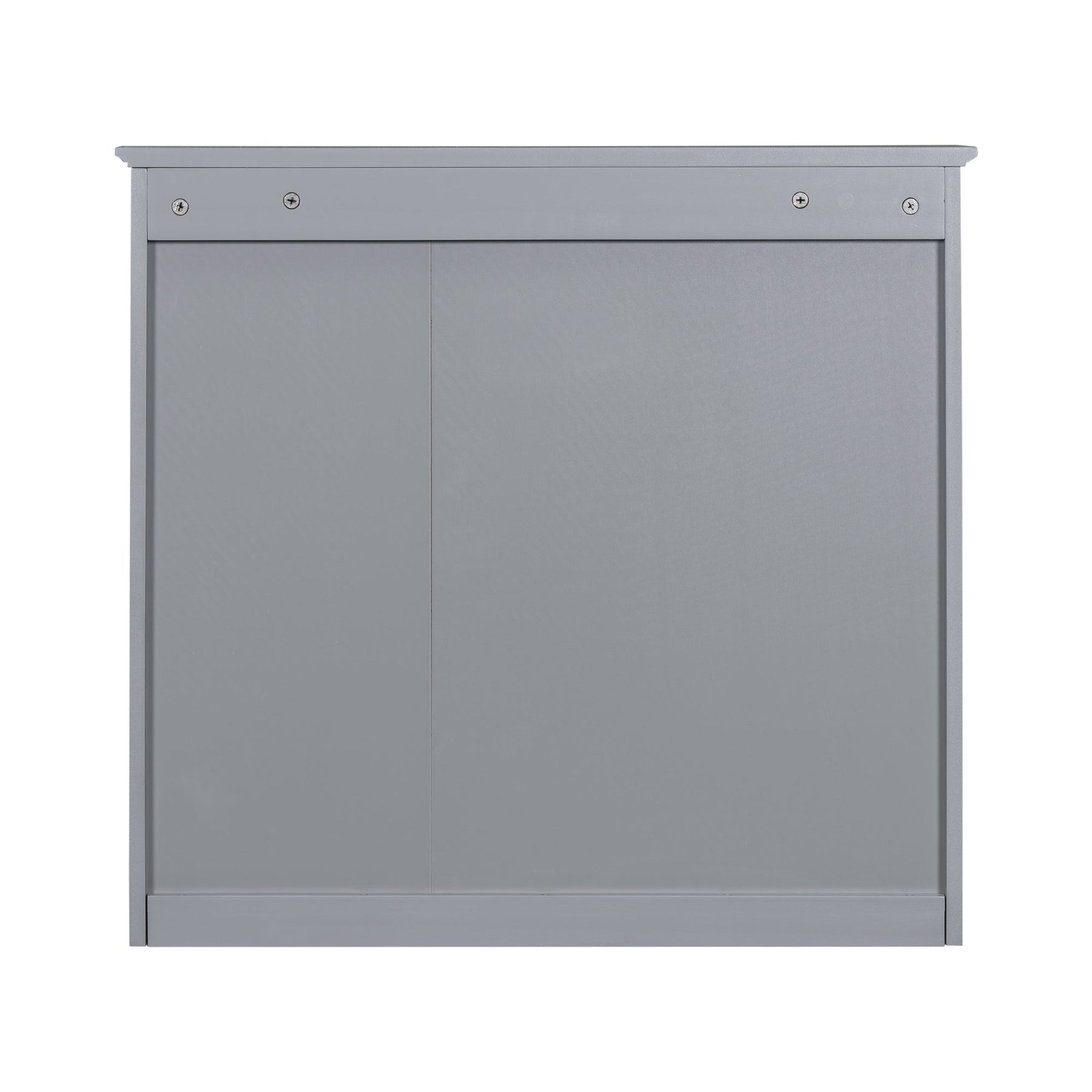 Elevate your bathroom with the WELLFOR MR Surface Mount Gray Mirrored Soft Close Medicine Cabinet. Crafted from durable MDF, it offers ample concealed storage with a sophisticated gray finish and vintage-inspired handles. The soft-close hinges ensure a smooth, silent operation, making it a functional and elegant addition to any bathroom decor.