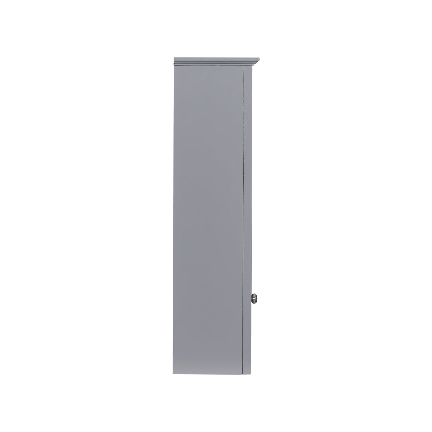 A: This cabinet is crafted from durable MDF with a sophisticated gray finish, ensuring it is both stylish and long-lasting.