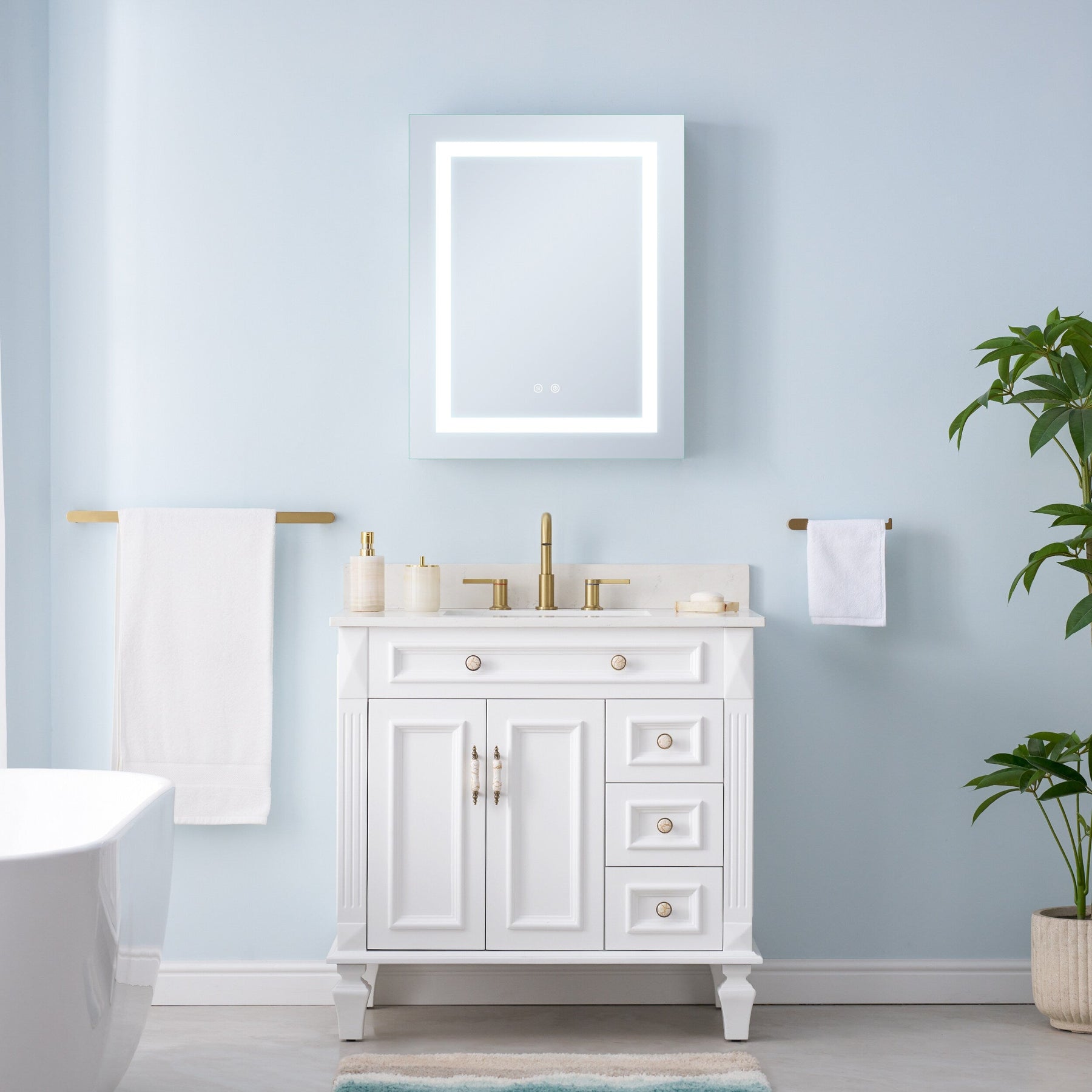 • Adjustable Shelving: Three tempered-glass shelves offer versatile storage options for various bathroom essentials.