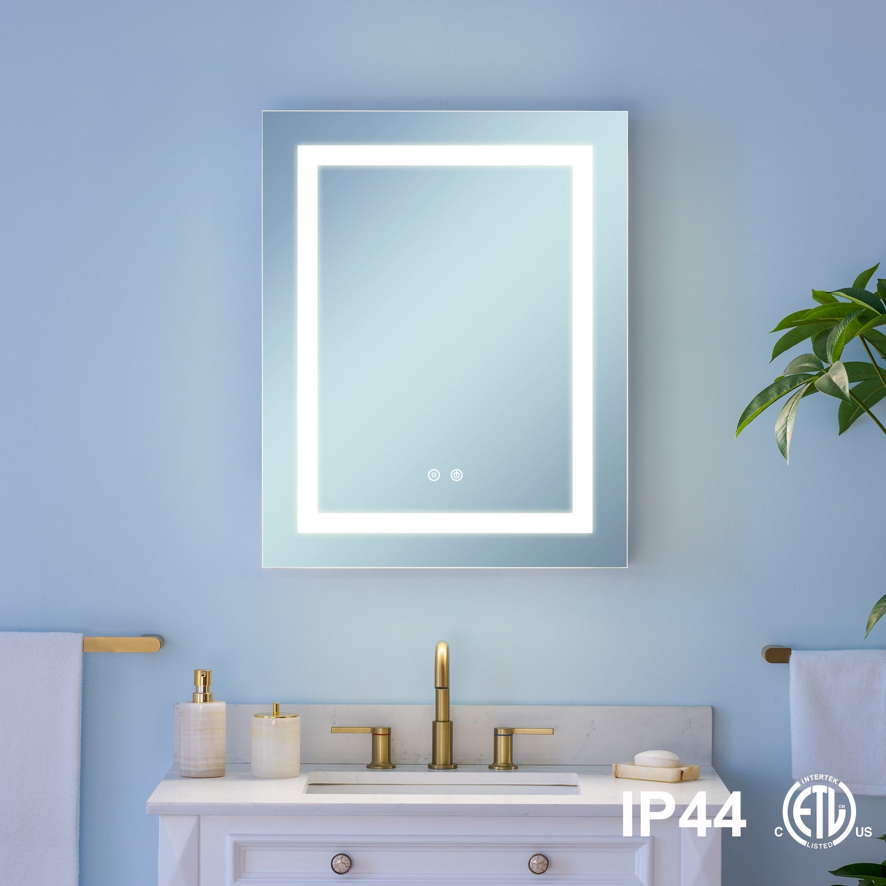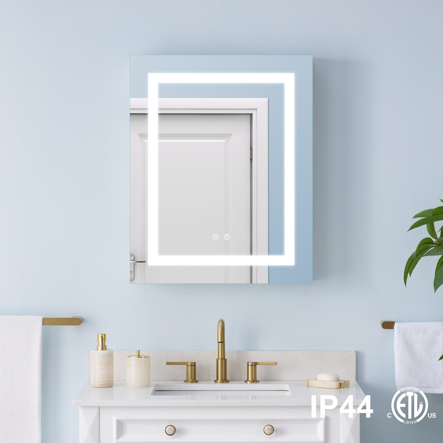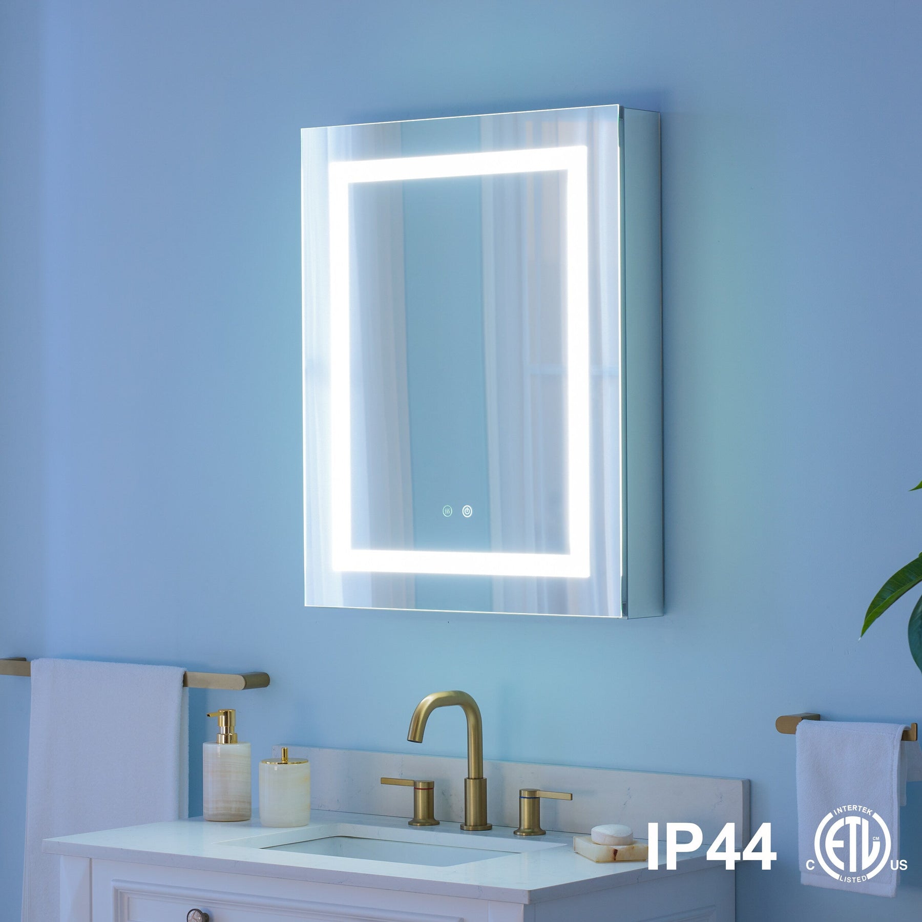 A: The cabinet features touch buttons that allow independent control of dimming and defogging functions, making it simple to set your preferred lighting and clear mirror settings.