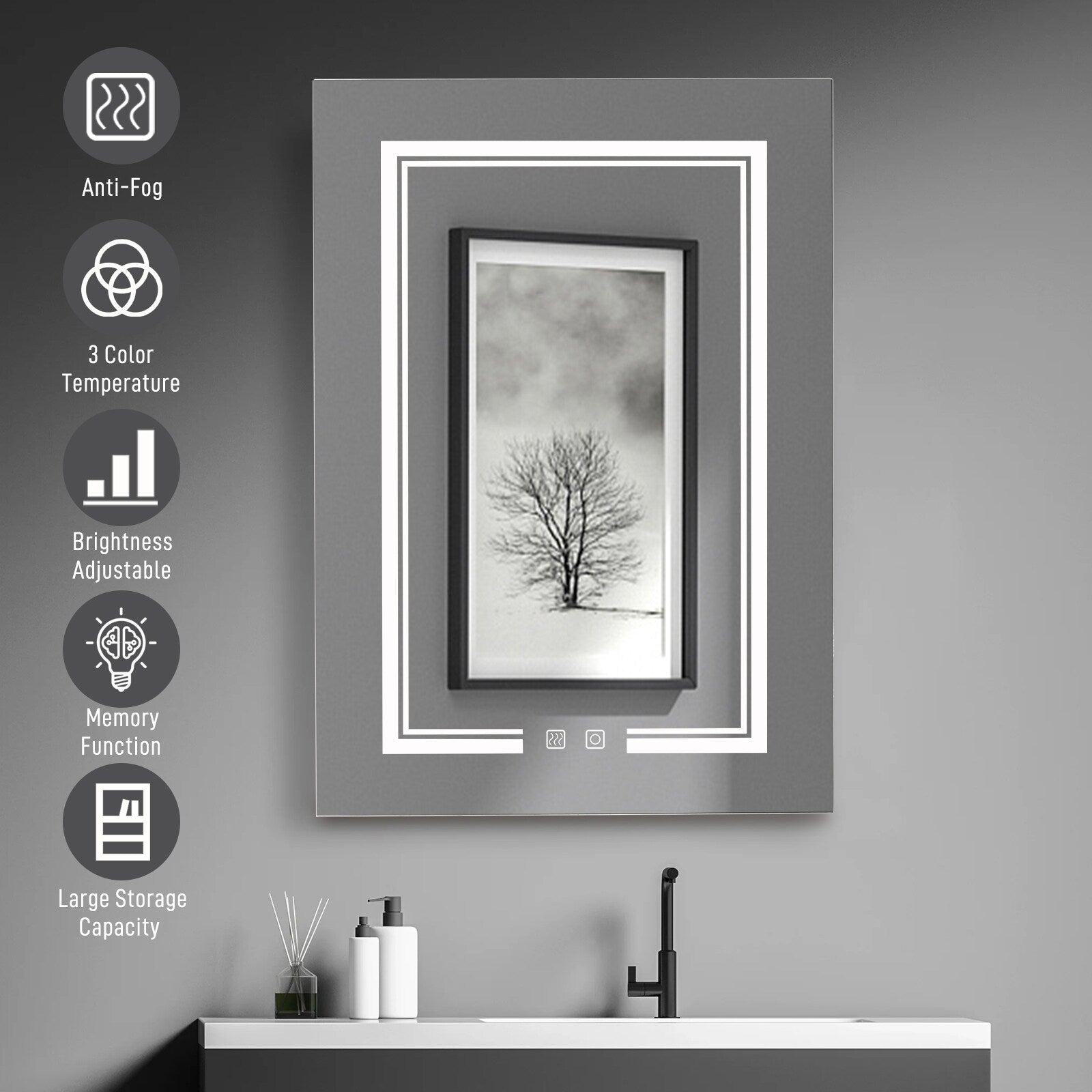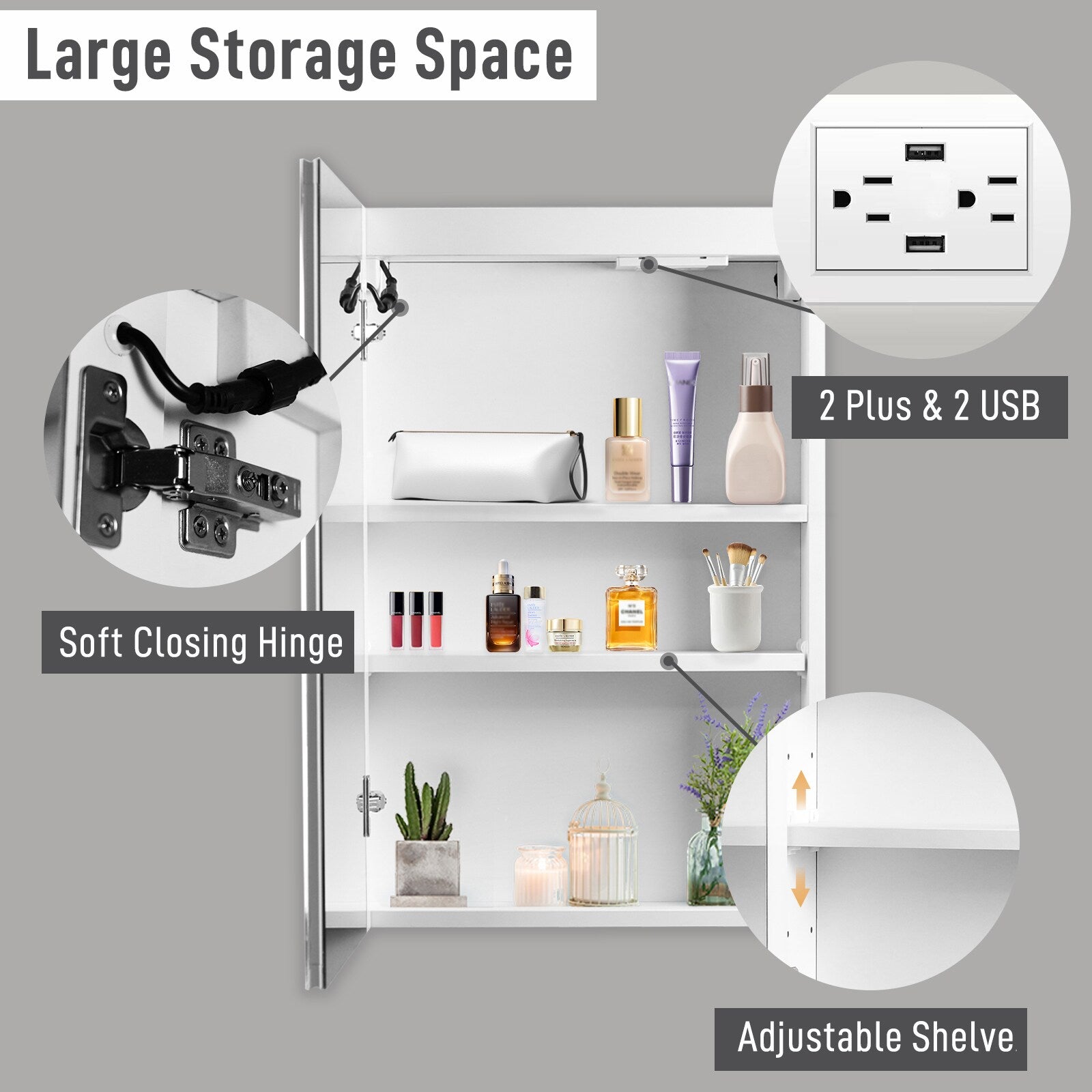 LED Fog-Free Mirrored Medicine Cabinet with Outlet
