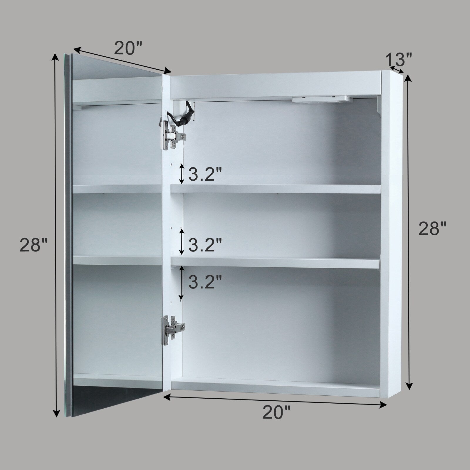 Winado 20-in x 28-in Lighted LED Fog Free Surface/Recessed Mount White Mirrored Medicine Cabinet with Outlet