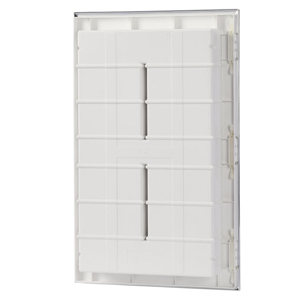 A: The cabinet features a high-impact polystyrene body and hinges for a durable, rust-free application, perfect for bathroom environments.