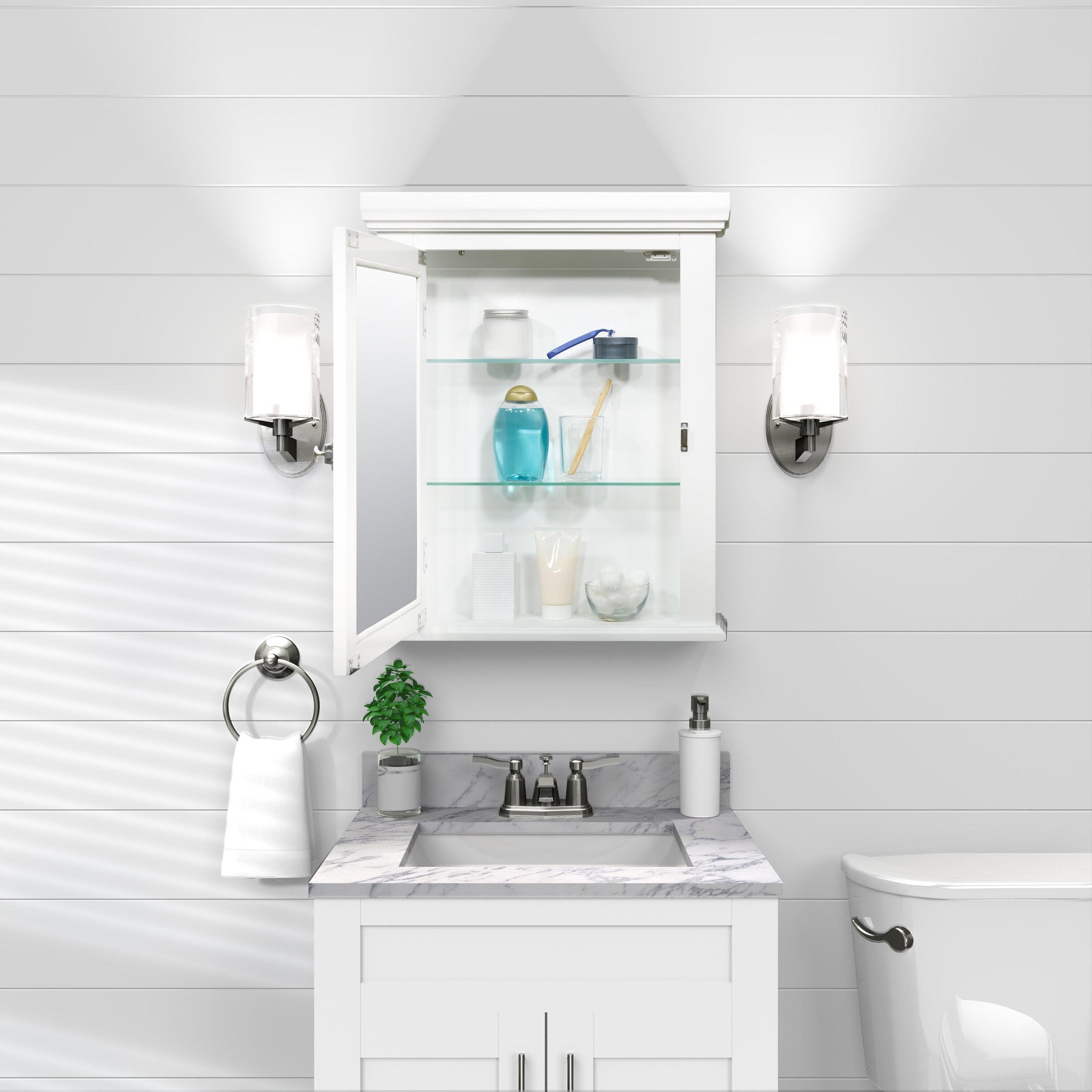 Elegantly crafted for the discerning homeowner, the Zenna Home White Medicine Cabinet combines classic design with practical functionality. Featuring a charming beveled mirrored door and two adjustable glass shelves, this surface-mounted cabinet easily adapts to various storage needs while enhancing your bathroom's aesthetic.