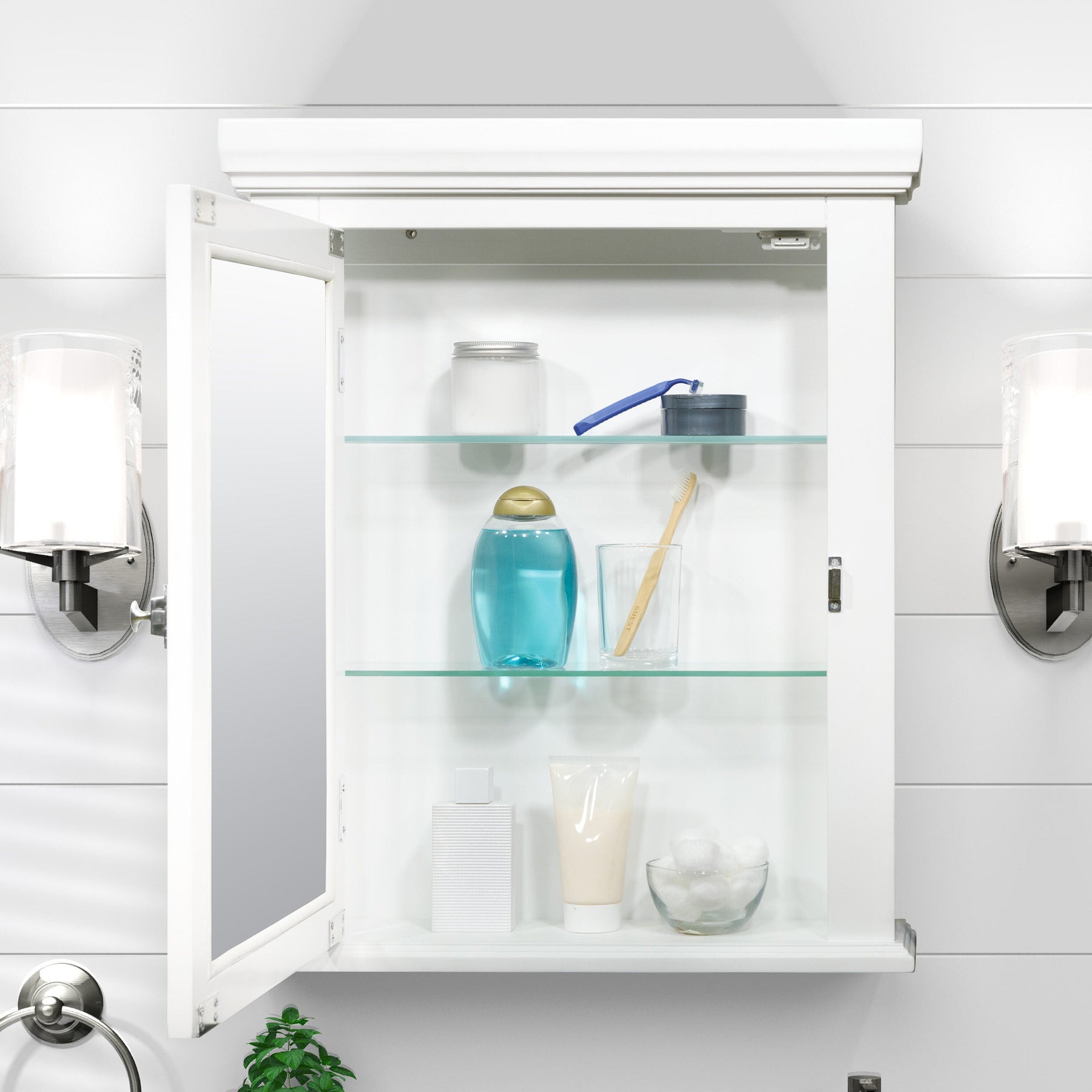 Zenna Home 22.38-in x 27.19-in Surface Mount White Mirrored Medicine Cabinet