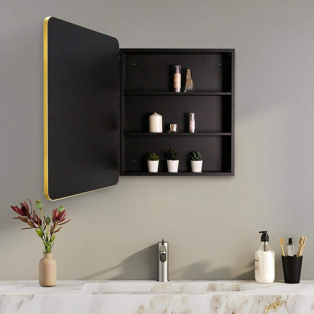 Zeus & Ruta 24 in. W x 30 in. H Rectangular Gold Framed Aluminum Medicine Cabinet with Mirror
