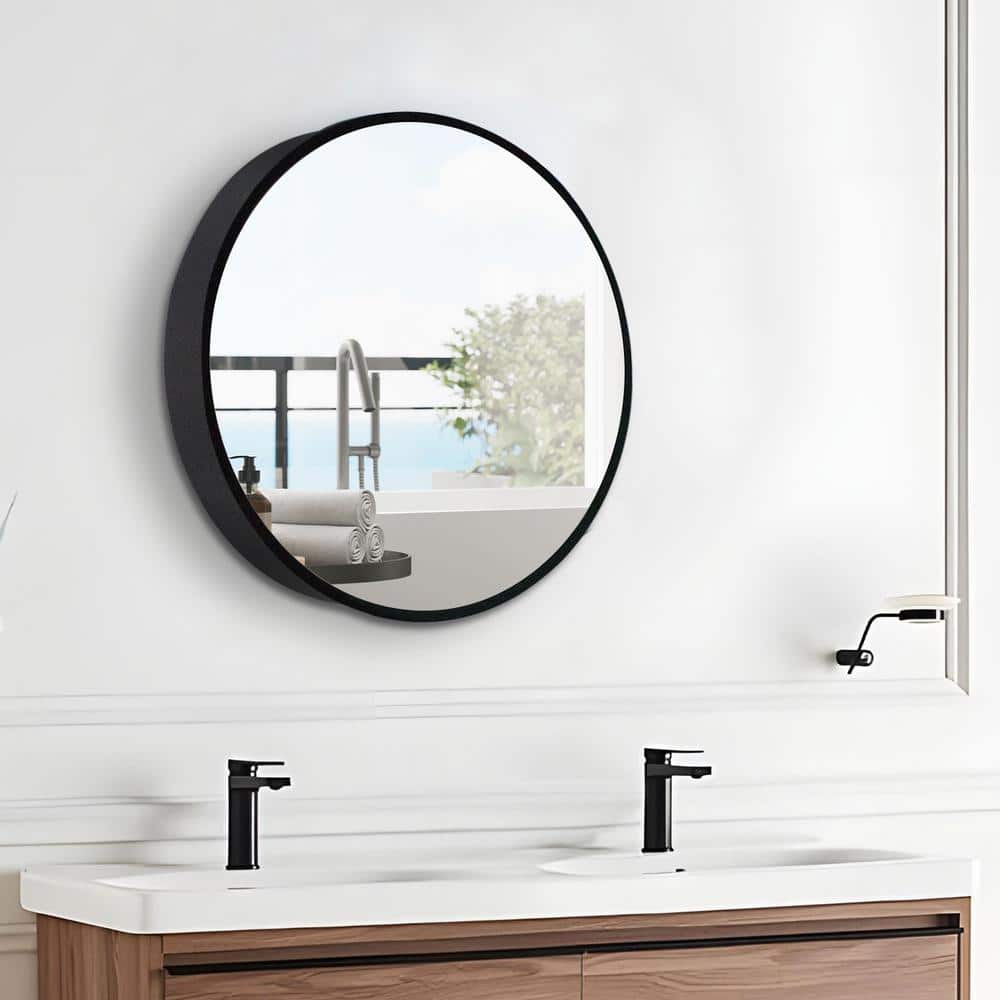 24 in. Round Black Framed Medicine Cabinet with Mirror