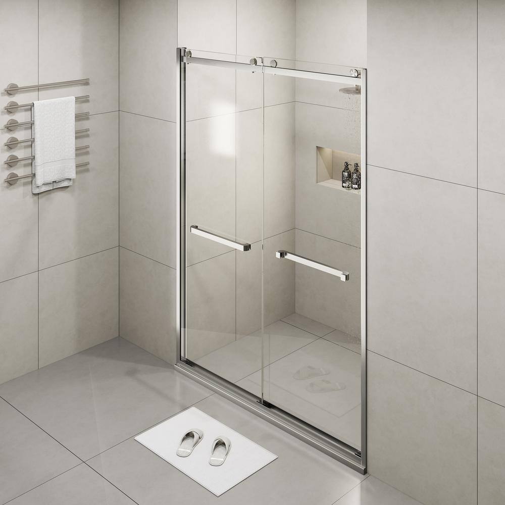MEDUNJESS BradF 60 in. W x 76 in. H Sliding Semi-Frameless Shower Door in Brushed Nickel with 3/8 in. (10mm) Tempered Clear Glass