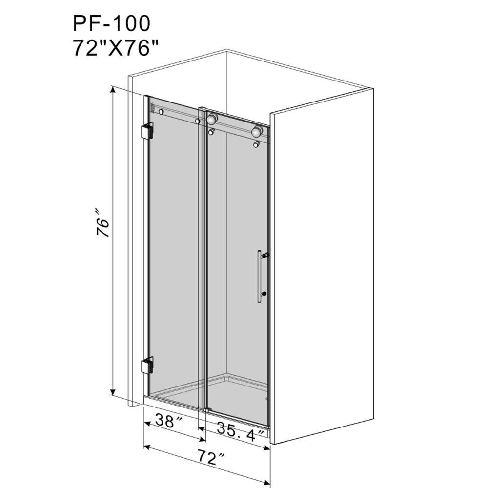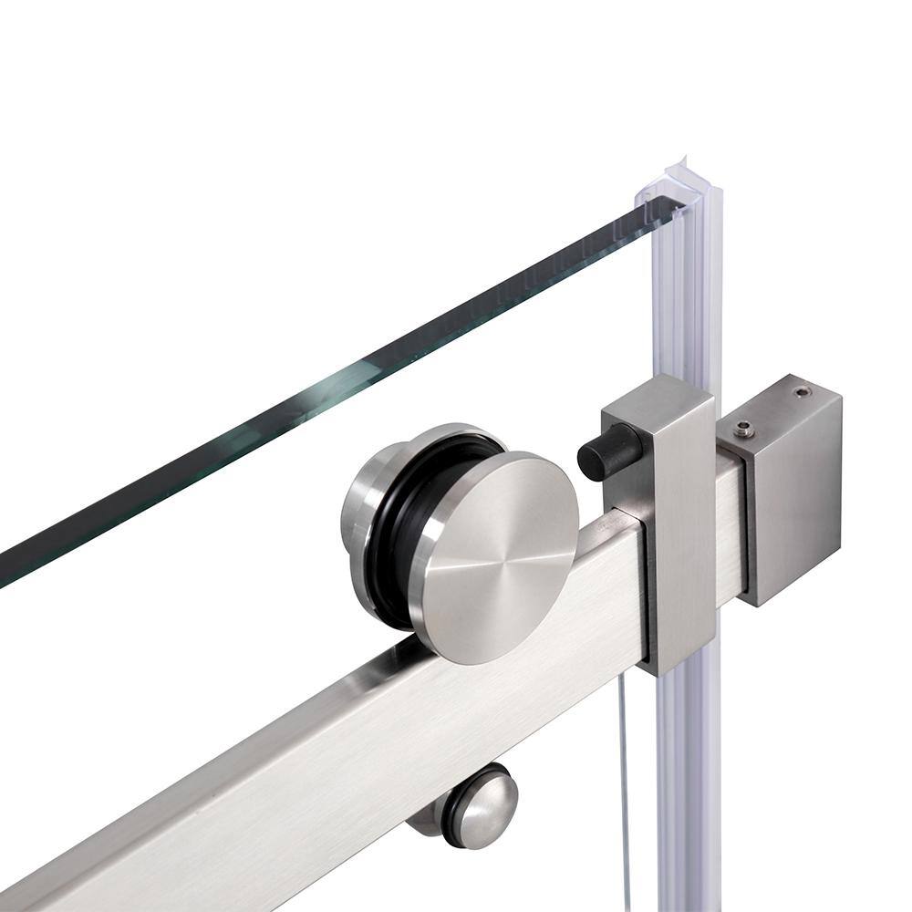 MEDUNJESS BradF 72 in. W x 76 in. H Sliding Frameless Shower Door in Brushed Nickel with 3/8 in. (10mm) Tempered Clear Glass
