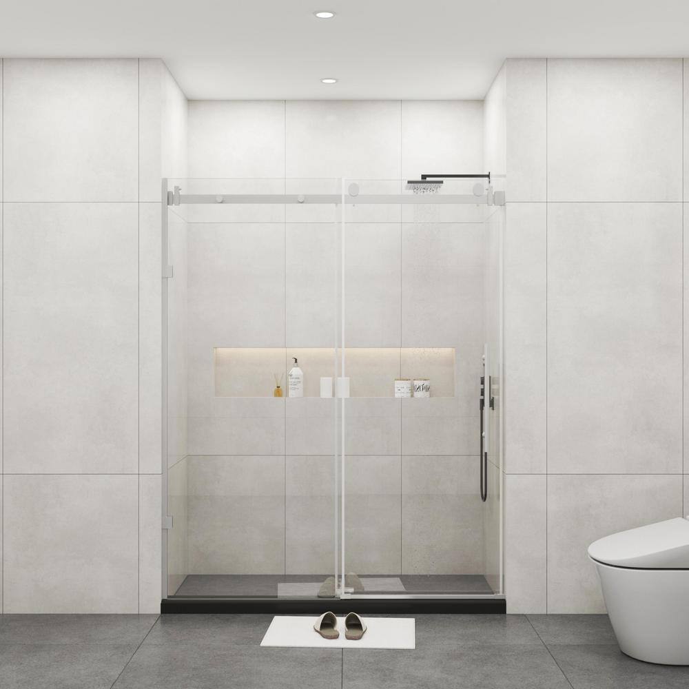 The MEDUNJESS BradF sliding frameless shower door adds a touch of modern elegance to any bathroom with its clear, tempered glass and sleek brushed nickel finish. Featuring a seamless design and durable stainless steel hardware, this shower door transforms your shower space into a serene, stylish retreat.