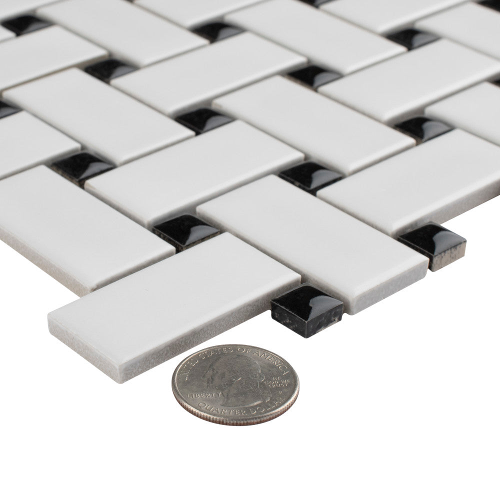 Metro Basketweave White/Black Dot Porcelain Mosaic Tile, 11-3/4 in. Sheet