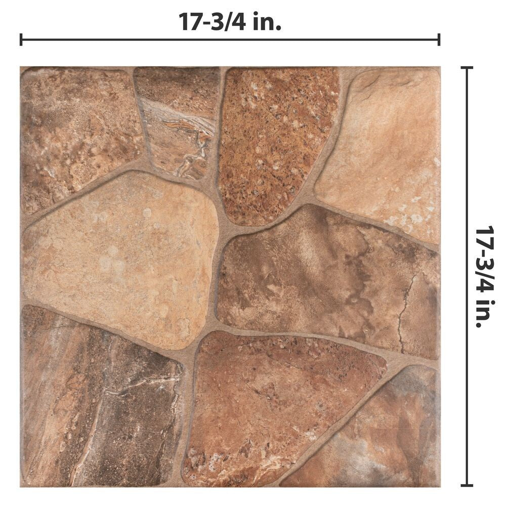 Stone-look ceramic tile with a glazed, slightly textured matte/low-sheen surface built for heavy residential and commercial traffic. Each 17-3/4 in. square tile delivers durable style for floors and walls, sold by the case covering 18 sq. ft.