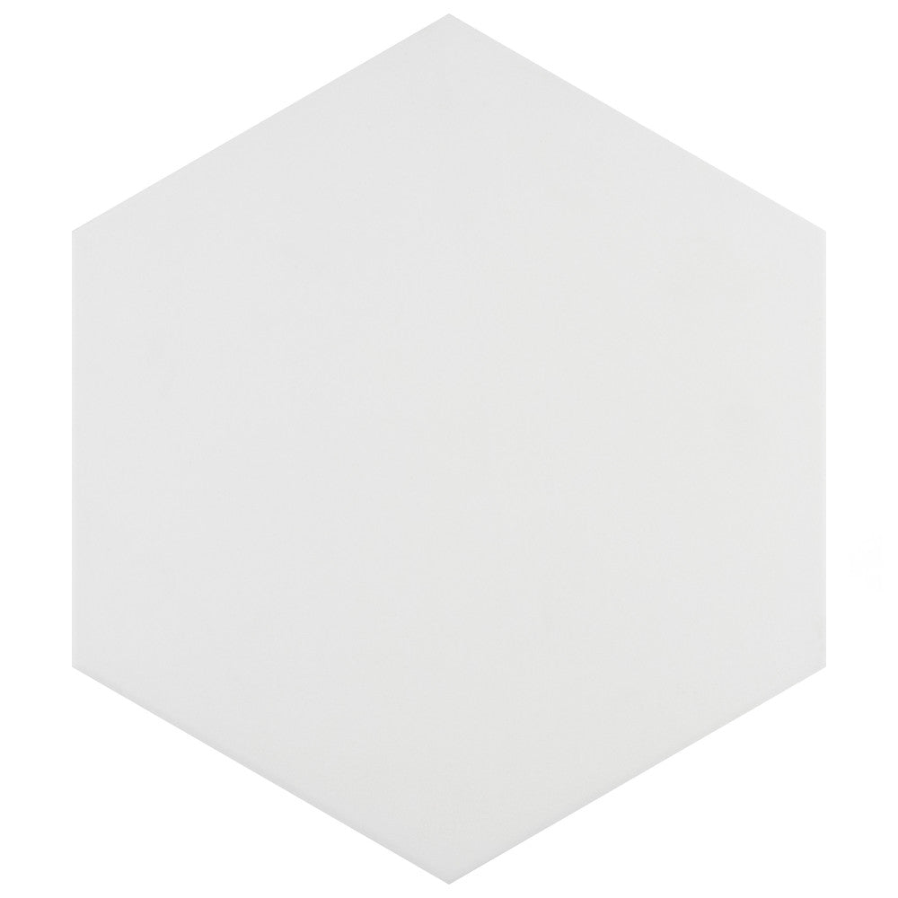 Apini Hex Matte White Porcelain Floor & Wall Tile, 9-1/8" x 10-1/2"