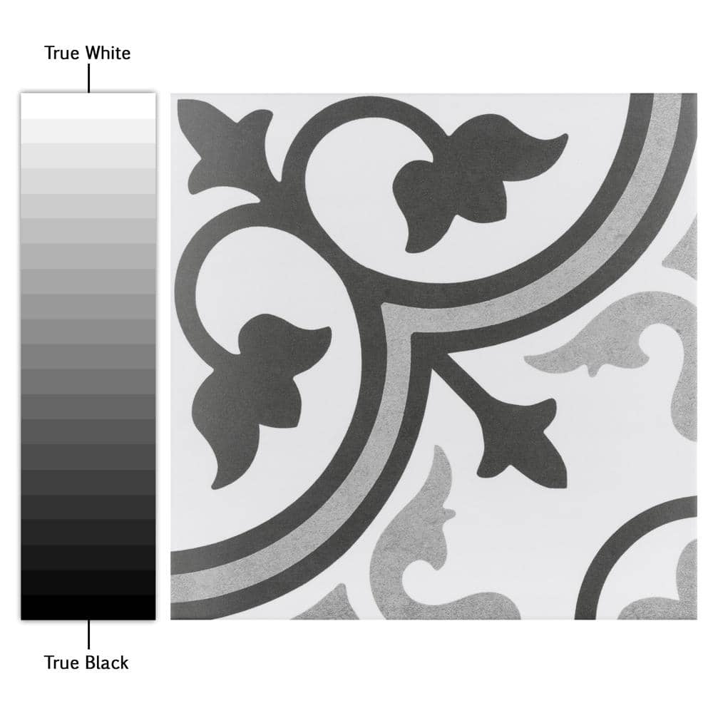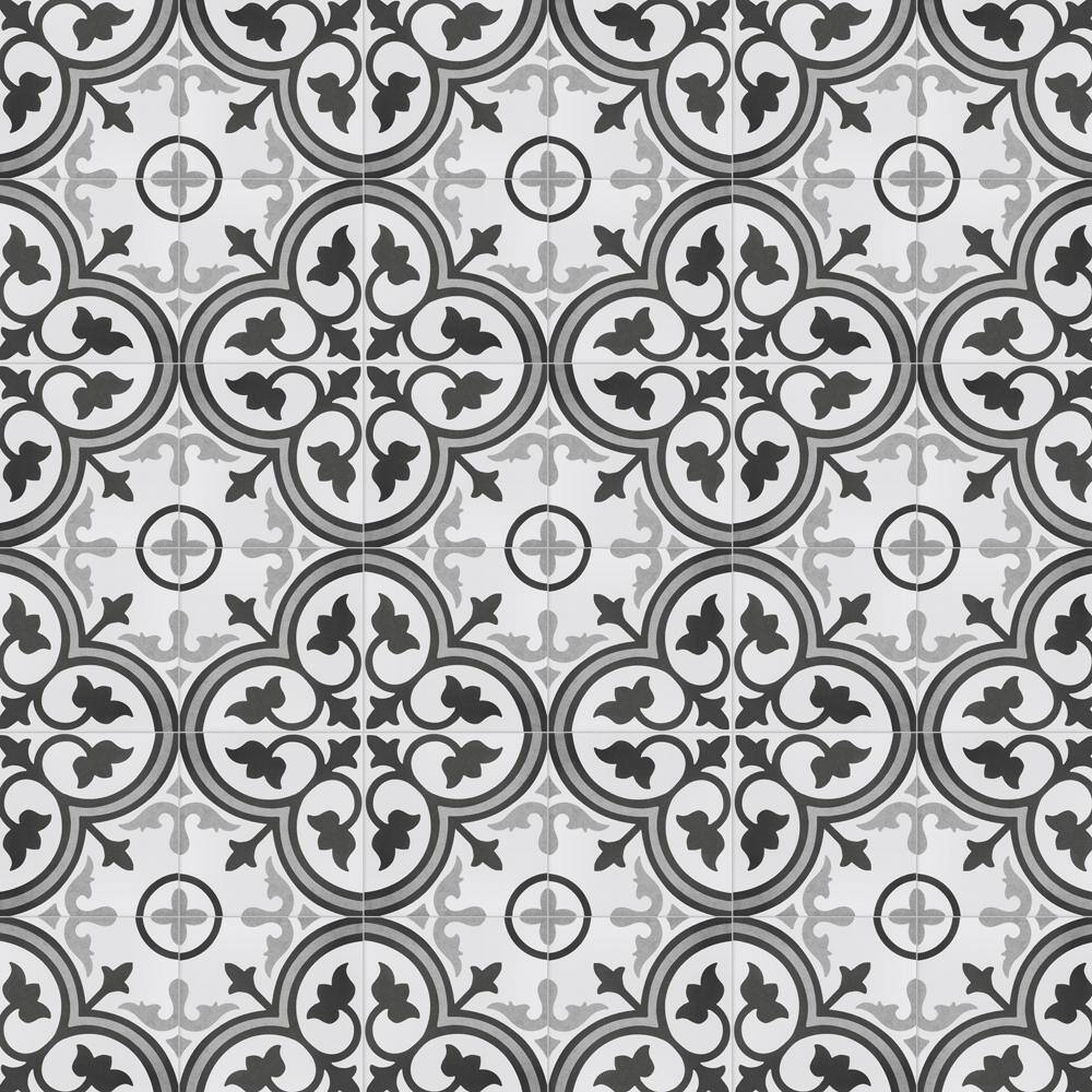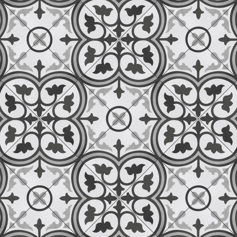• Timeless Encaustic Look: Classic floral-geometric motif in black, gray and white adds vintage character