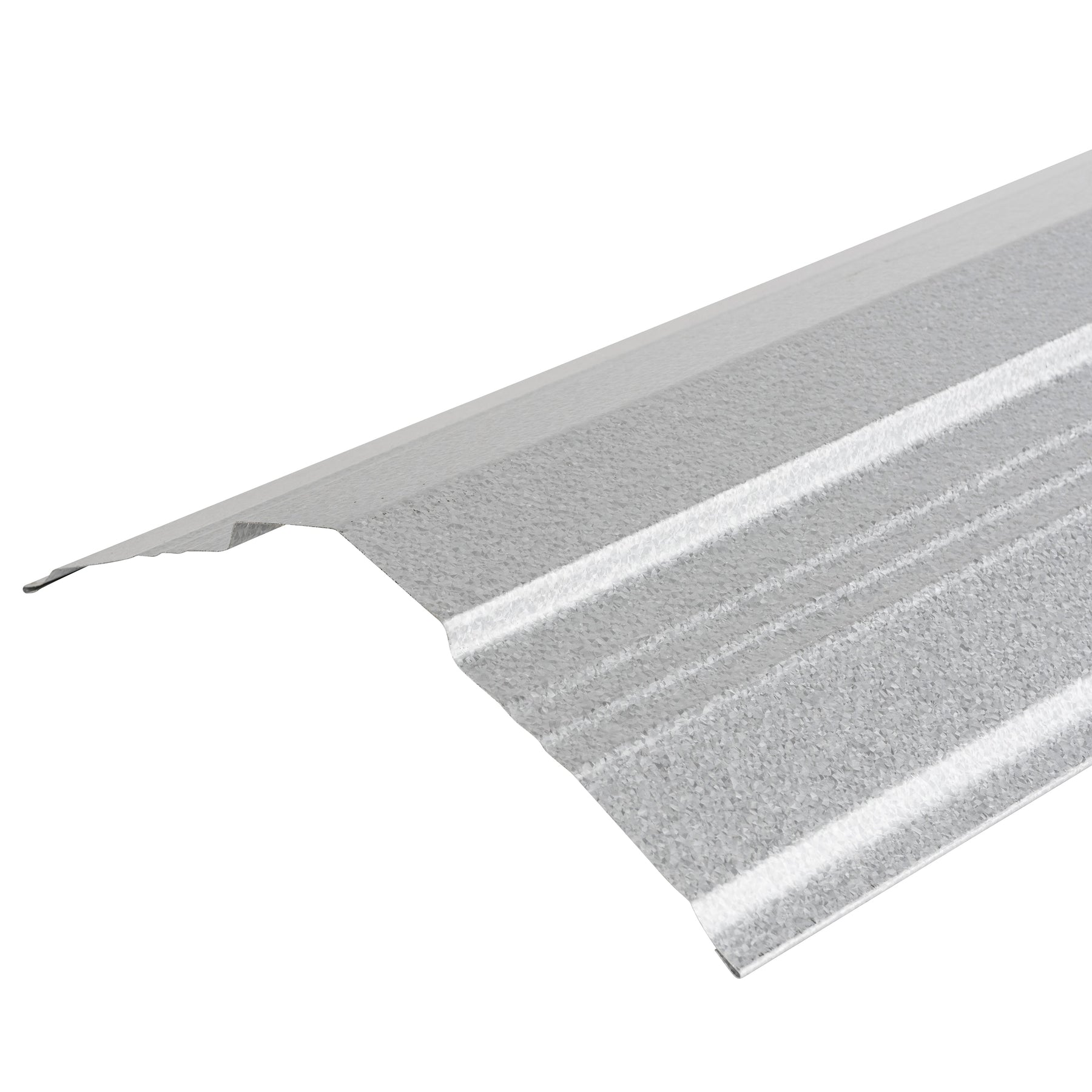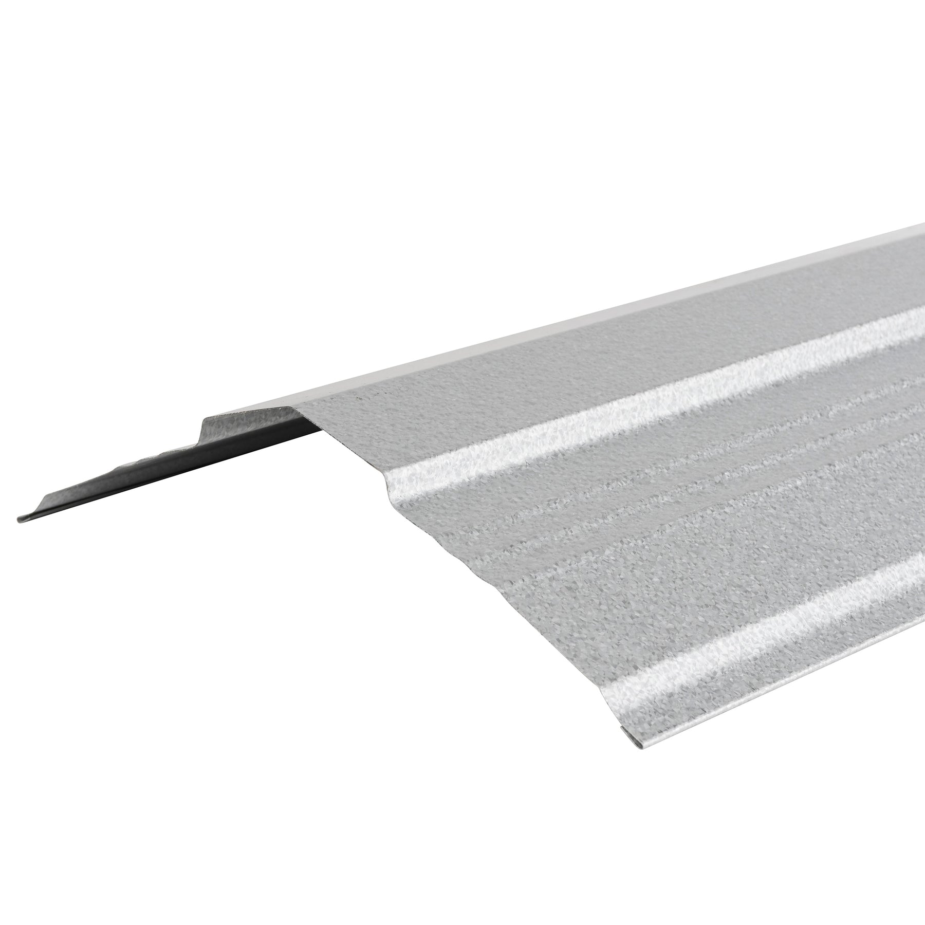 The galvalume ridge cap brings a clean, modern edge to the roofline, with subtle striations that catch the light and add dimensionality. Its streamlined steel form finishes the peak with precision while protecting against the elements. Pair it with matching silver panels for a cohesive industrial chic statement. A smart, polished detail that elevates everyday architecture into refined living.