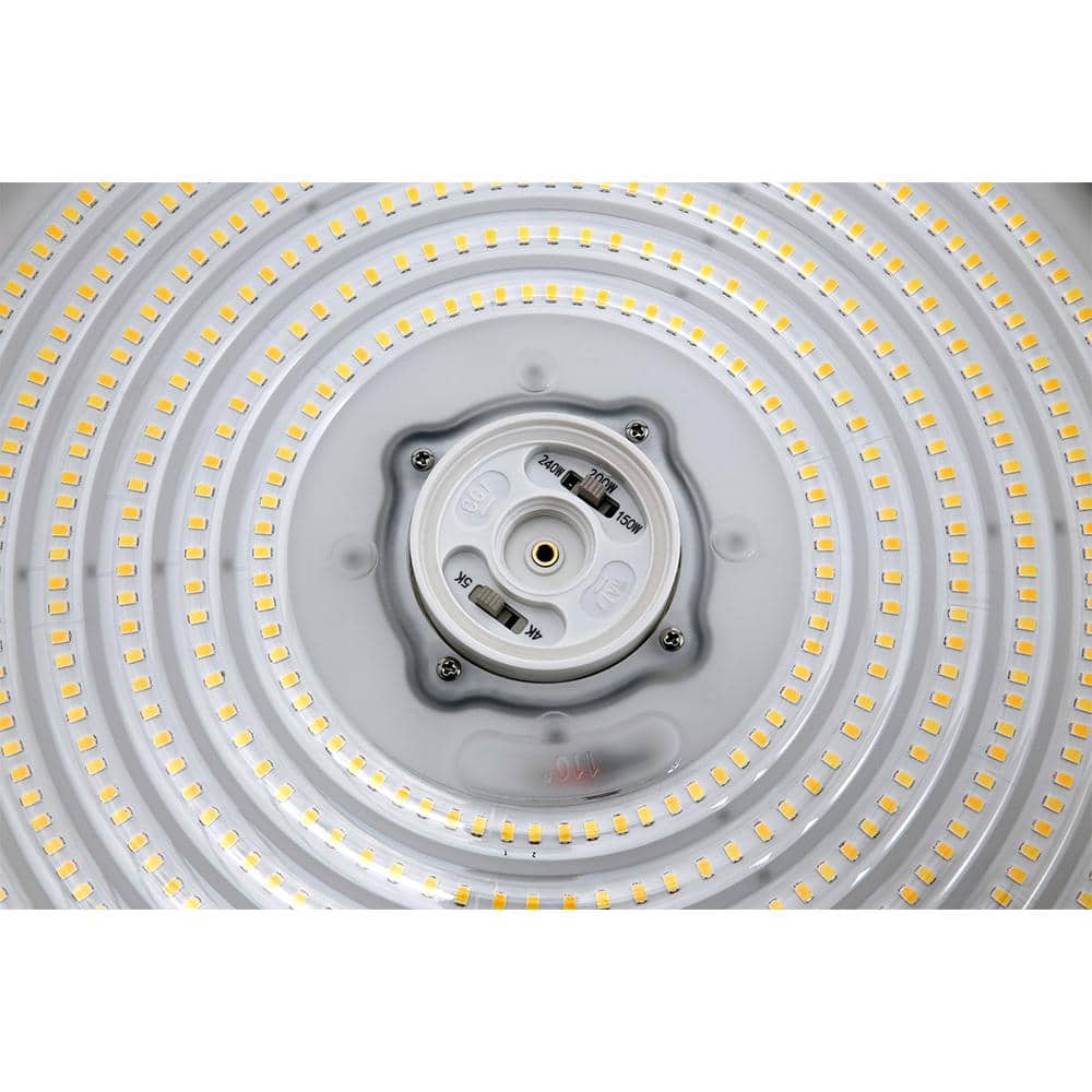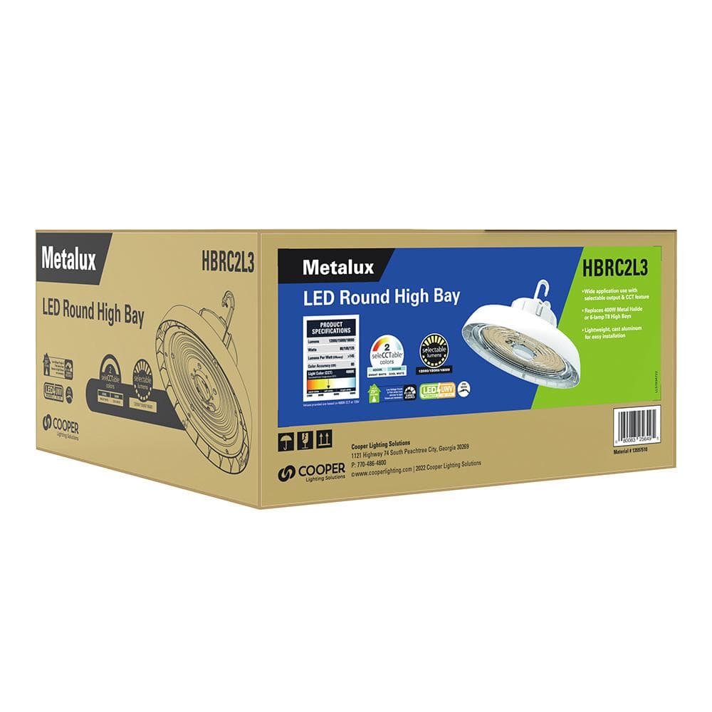 Illuminate large commercial spaces with the Metalux 13 in. Round LED High Bay Light, a versatile solution offering 400-Watt equivalent brightness while saving energy. Easily adjustable in both color temperature and lumen output, it’s ideal for warehouses, workshops, and expansive offices.