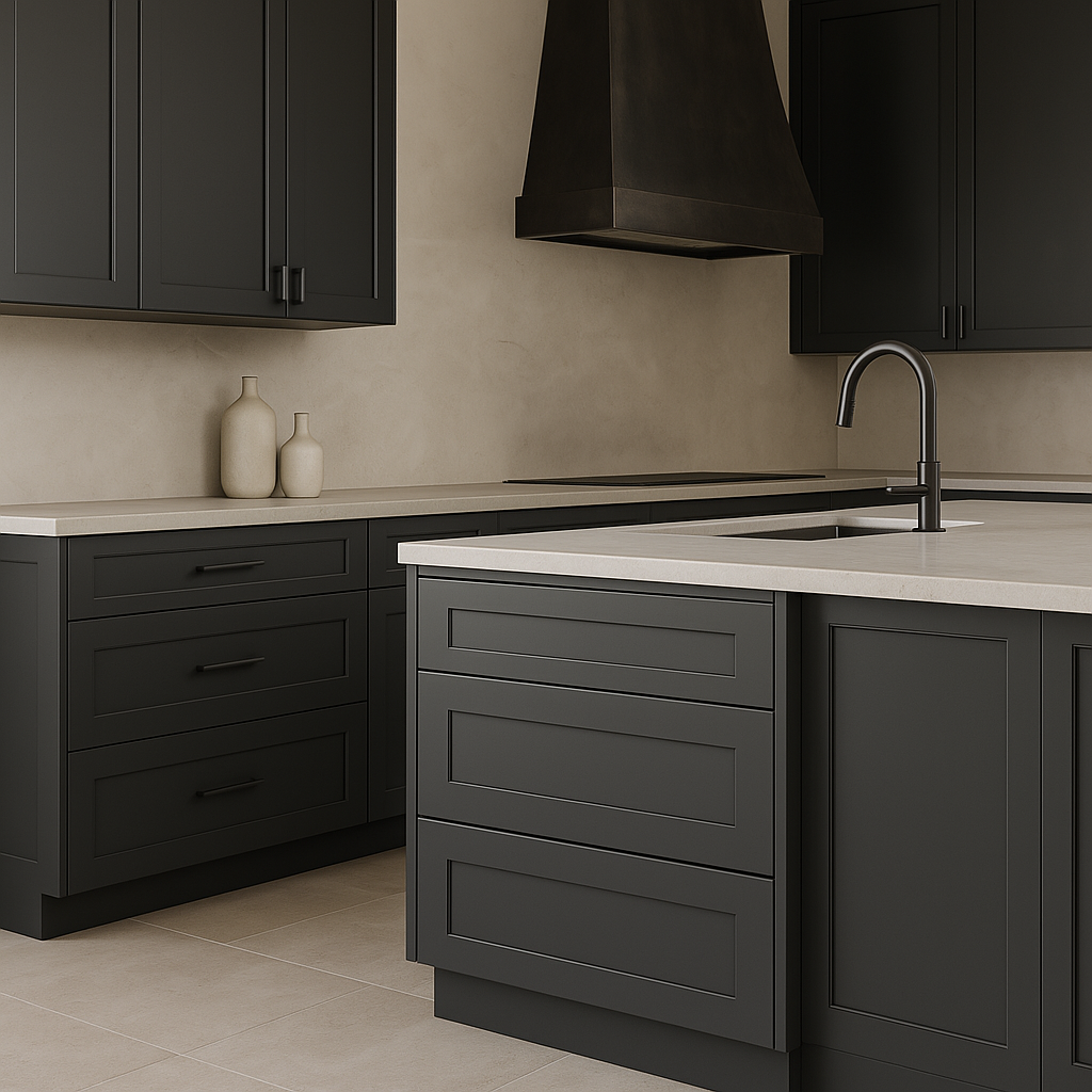 The Richmond Venetian Onyx Shaker Drawer Base Cabinet is a masterpiece of modern design and functionality. Its deep gray finish adds a sophisticated touch, while the shaker-style doors bring timeless charm. Pair it with light countertops for a striking contrast or integrate it into a monochromatic scheme for a sleek look. This cabinet is not just storage; it's a statement piece that transforms your kitchen into a haven of style and practicality.
