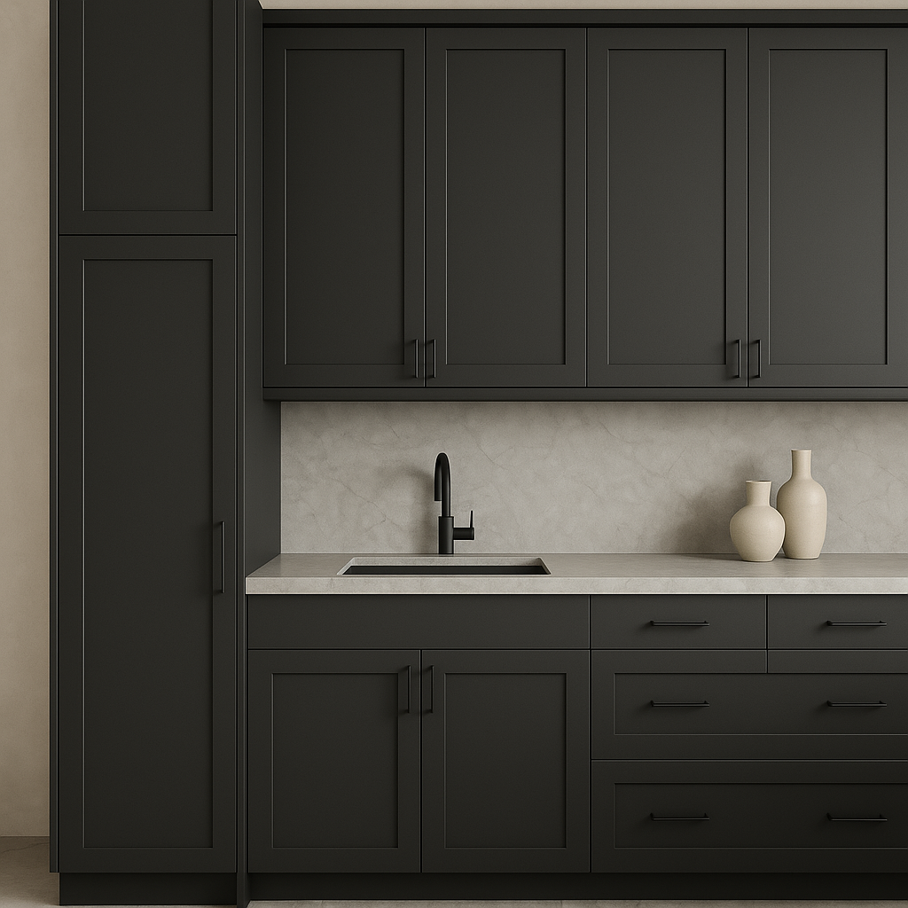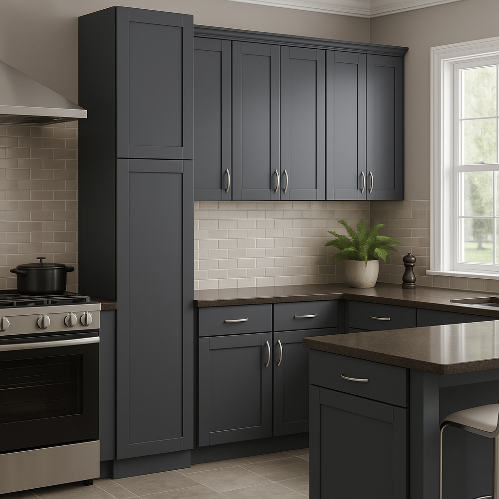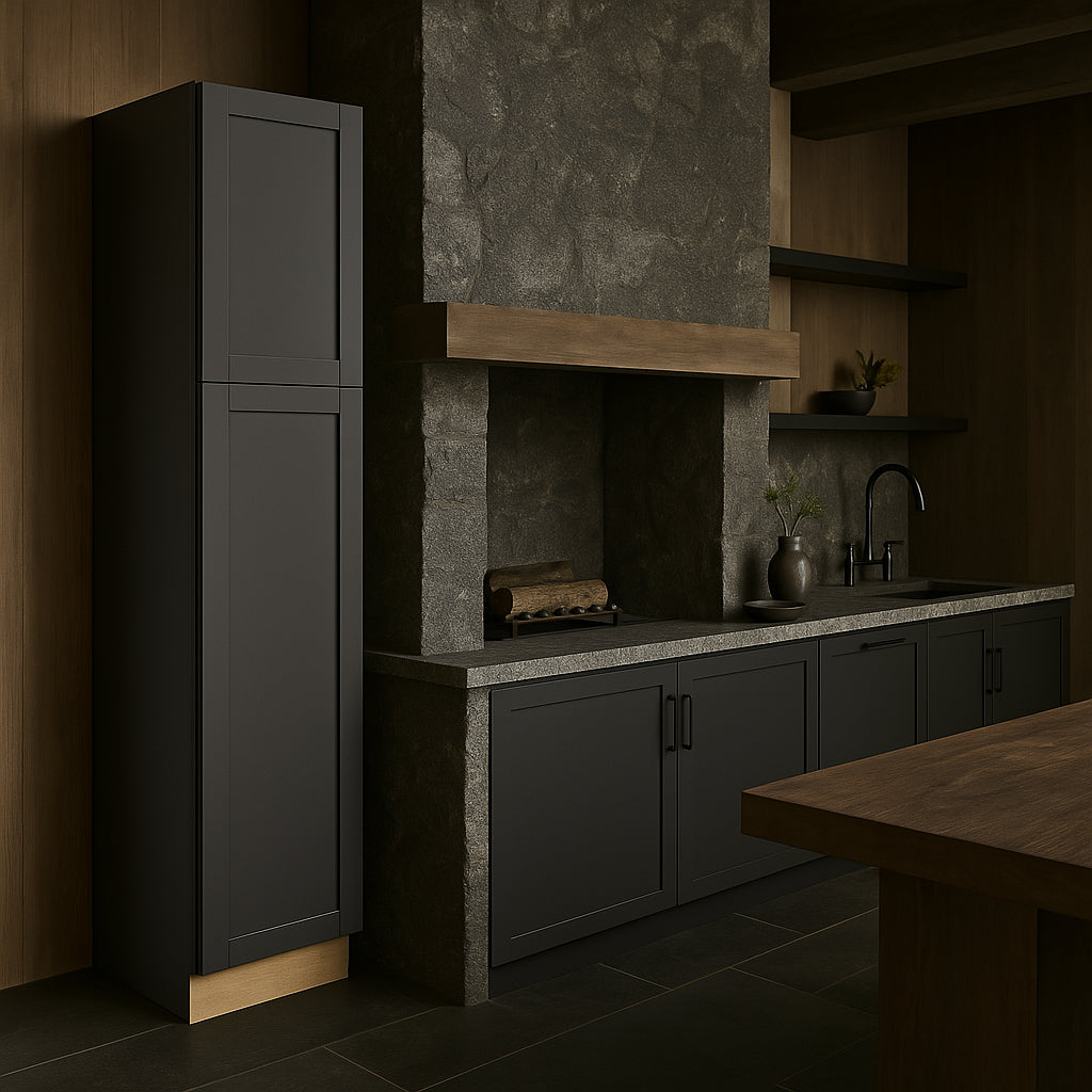 The Richmond Venetian Onyx Shaker Pantry Cabinet is a masterpiece of modern design and functionality. Its deep gray finish adds a touch of sophistication, while the shaker-style doors provide a timeless appeal. Pair it with light countertops for a striking contrast or integrate it into a monochromatic scheme for a seamless look. This cabinet is not just storage; it's a statement piece that transforms your kitchen into a haven of style and practicality.