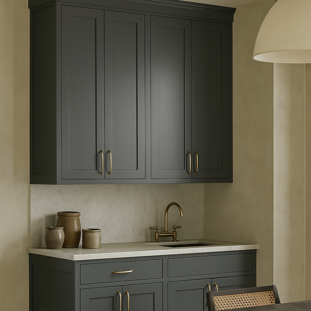 The Richmond Venetian Onyx Shaker Cabinet is a masterpiece of modern design, blending deep gray tones with a sleek shaker style. Its thermofoil finish adds a touch of sophistication while ensuring durability. Pair it with light countertops for a striking contrast or integrate it into a monochromatic palette for a seamless look. This cabinet is not just storage; it's a statement of refined taste and functionality.