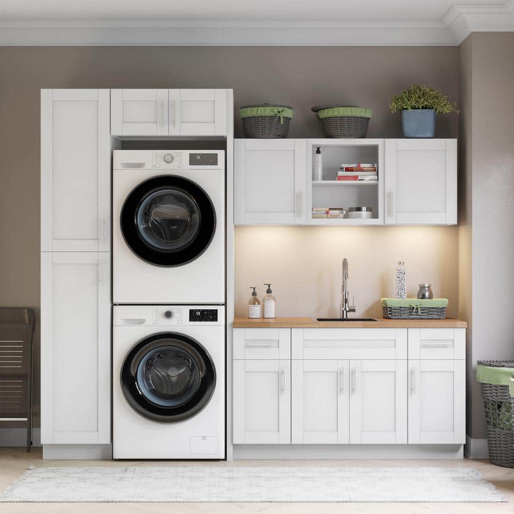 Unleash the transformative power of the MILL'S PRIDE Verona White Shaker Cabinets to redefine your kitchen or laundry room. The classic Shaker style, with its smooth matte vinyl finish, creates an ambiance of timeless elegance and modern functionality. These cabinets not only provide ample storage but do so with an understated sophistication that speaks to a curated aesthetic. Embrace functional beauty and make it an integral feature in your space, embodying luxurious living by blending utility with sleek design.