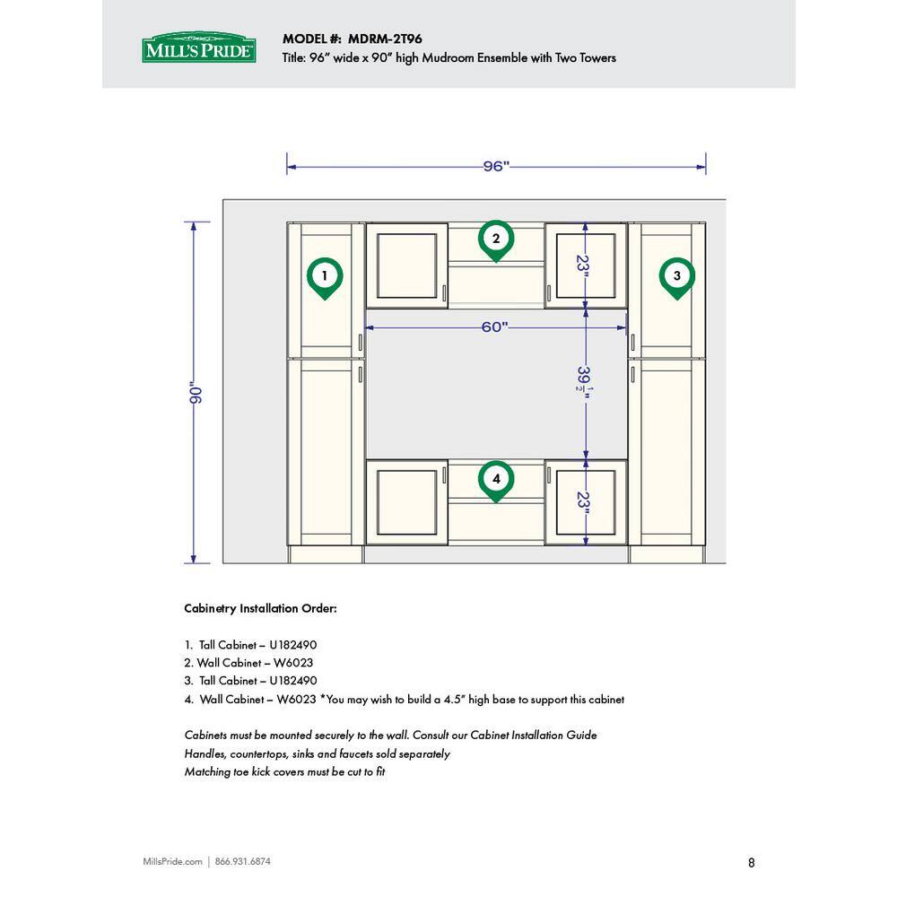 MILL'S PRIDE Richmond Verona White Plywood Shaker Ready to Assemble Base Kitchen Cabinet Mudroom Sft Cls 96 in W x 24 in D x 90 in H