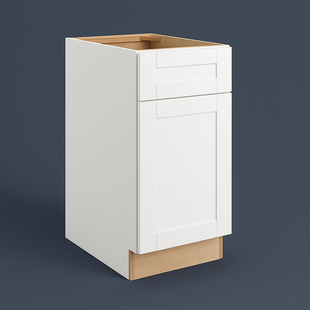 The MILL'S PRIDE Richmond Verona White Shaker Base Kitchen Cabinet combines durable plywood construction with a stylish shaker design. Featuring soft-close doors and adjustable shelves, this cabinet is perfect for modern kitchens.