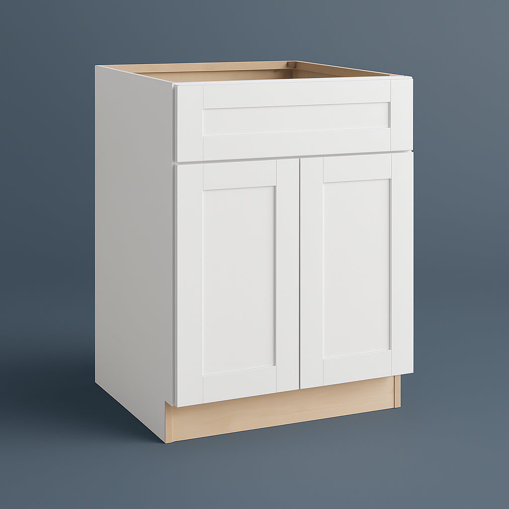 The MILL'S PRIDE Richmond Verona White Shaker Base Kitchen Cabinet combines durable plywood construction with a stylish shaker design. Featuring soft-close doors and adjustable shelves, this cabinet is perfect for modern kitchens.